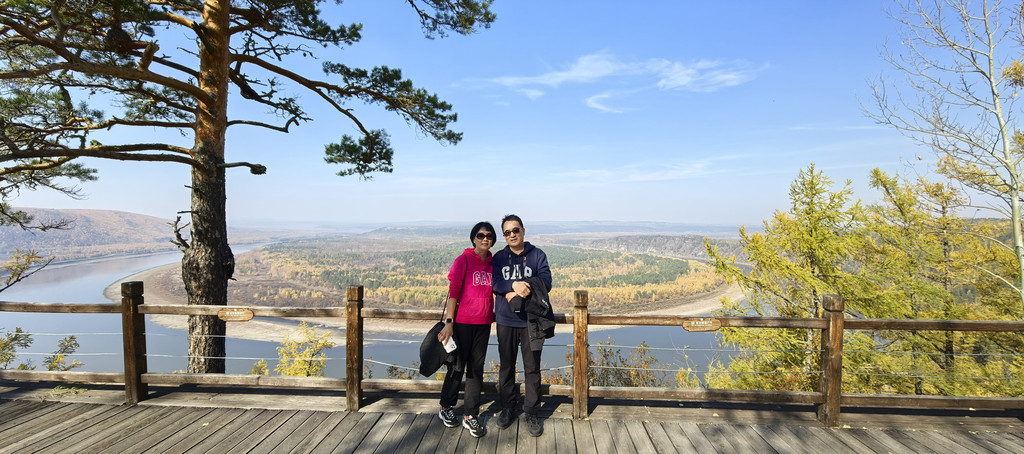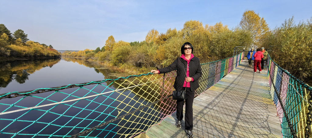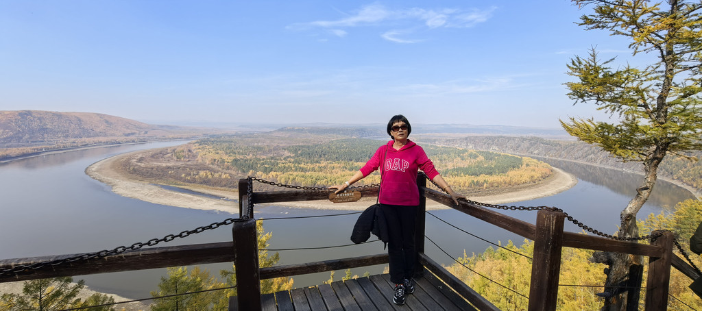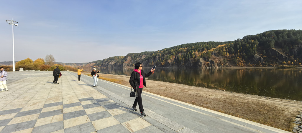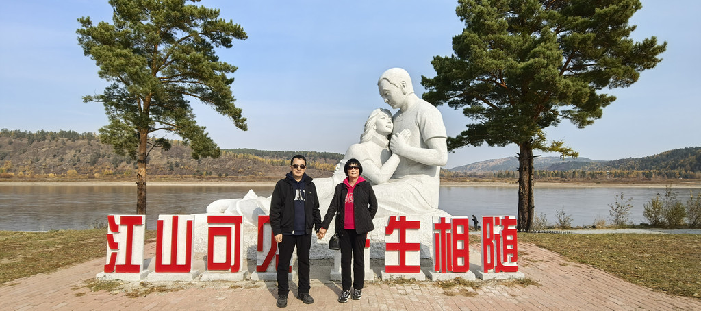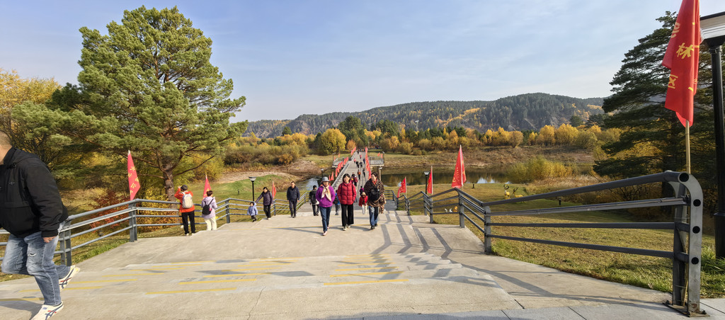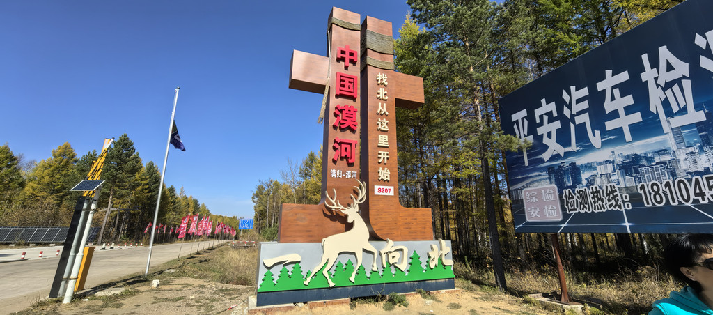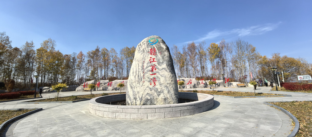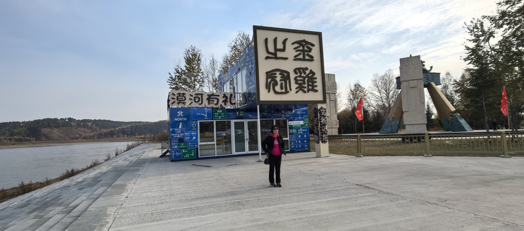 9:00离开北极星广场,10:50到达龙江第一湾停车场(过了北红村,还没到乌苏里浅滩,路中间有一道门,不许车辆通行)。这才知道这三个景点被打包了,都归入龙江第一湾景区,要做景区摆渡车才能进(门票50,摆渡车60)。