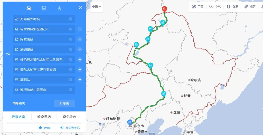 当天实际路线并不像图片中所示,因为这条线当天导航时已经不见了,只能选择借道京哈一段,结果8小时的路走了11个小时。