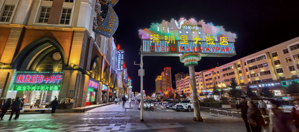 满洲里由南向北分为一道街、二道街、三道街等等,我们住在一道街的满洲里友谊宾馆,由此向西两条南北向大街于这几道街交织构成这一片繁华区域,中苏金街就在这里。