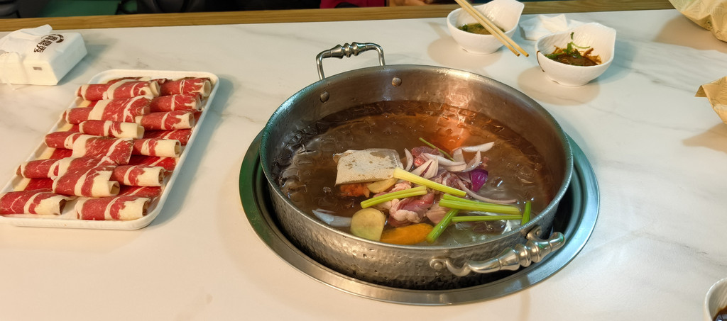 冰煮羊:火锅点火之前,锅里放了很多冰,加上一些鲜羊肉,然后点火煮!!!