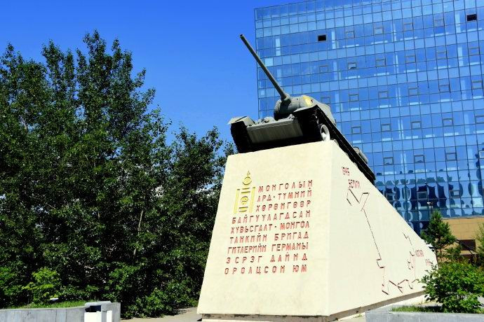 乌兰巴托斋桑山下的坦克纪念碑,是为纪念1943年前苏联卫国战争时期,蒙古人民捐款给苏联红军购买了一批坦克,组建了名叫“革命蒙古”的坦克纵队而建。这支坦克纵队在战争中英勇作战,屡战屡胜一直打到德国首都柏林,由于他们的赫赫战功,因而得到了苏联和蒙古共9枚勋章的嘉奖。