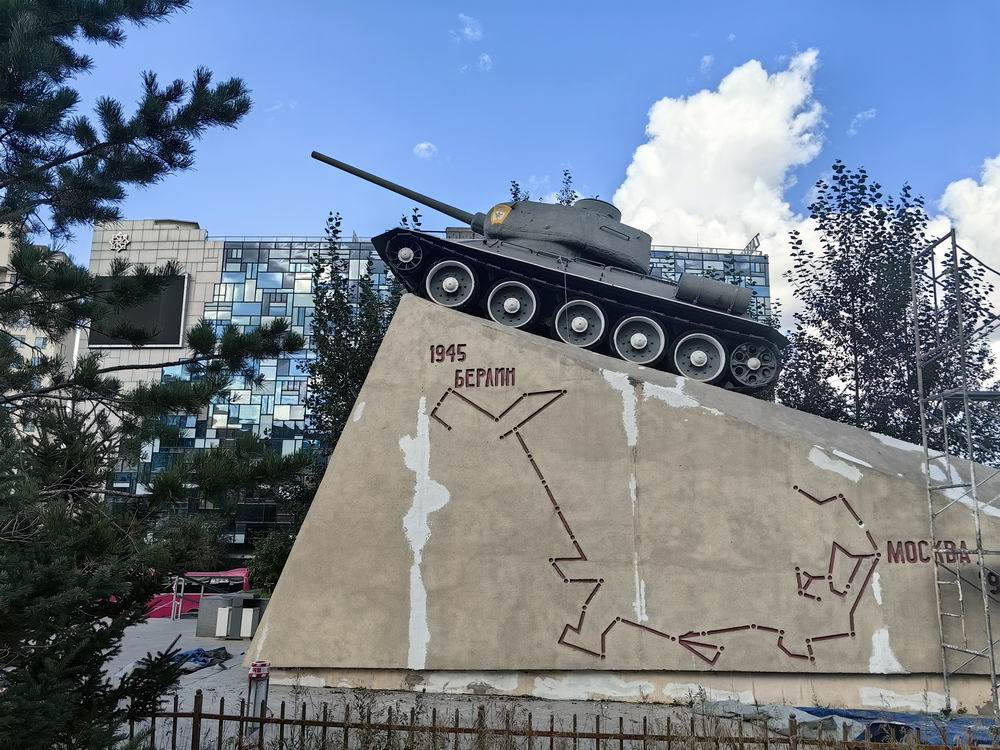 翟山下的坦克纪念碑,是上世纪六十年代末,蒙古国为纪念“革命蒙古”坦克纵队,在乌兰巴托建立了这座坦克纪念碑。
