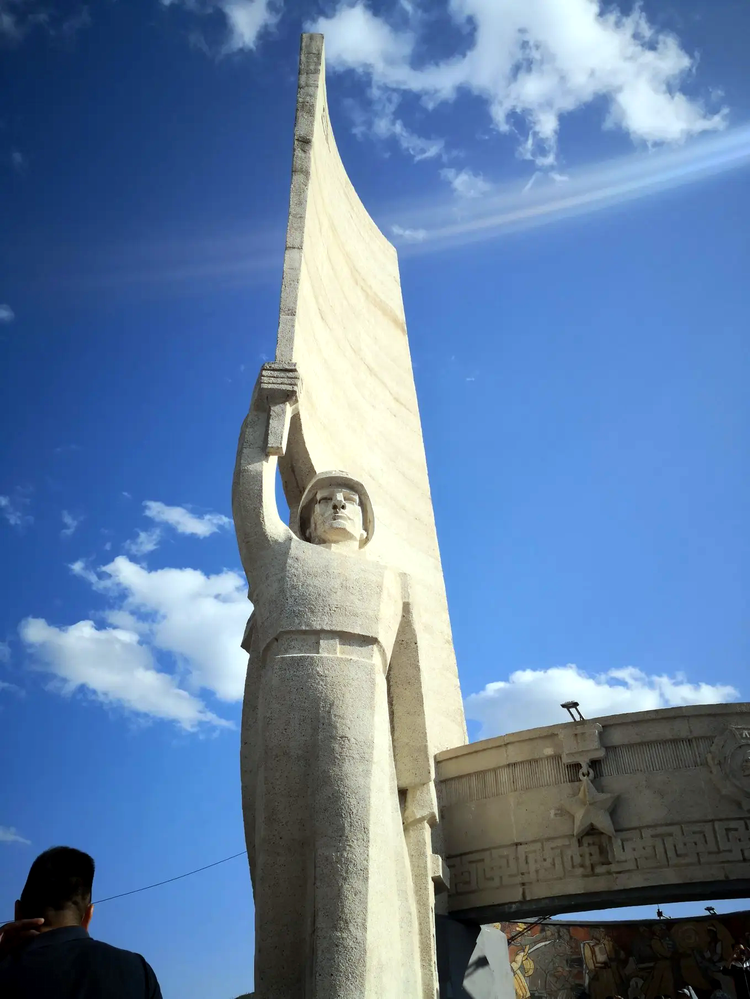 抗日纪念碑旁的巨大雕塑