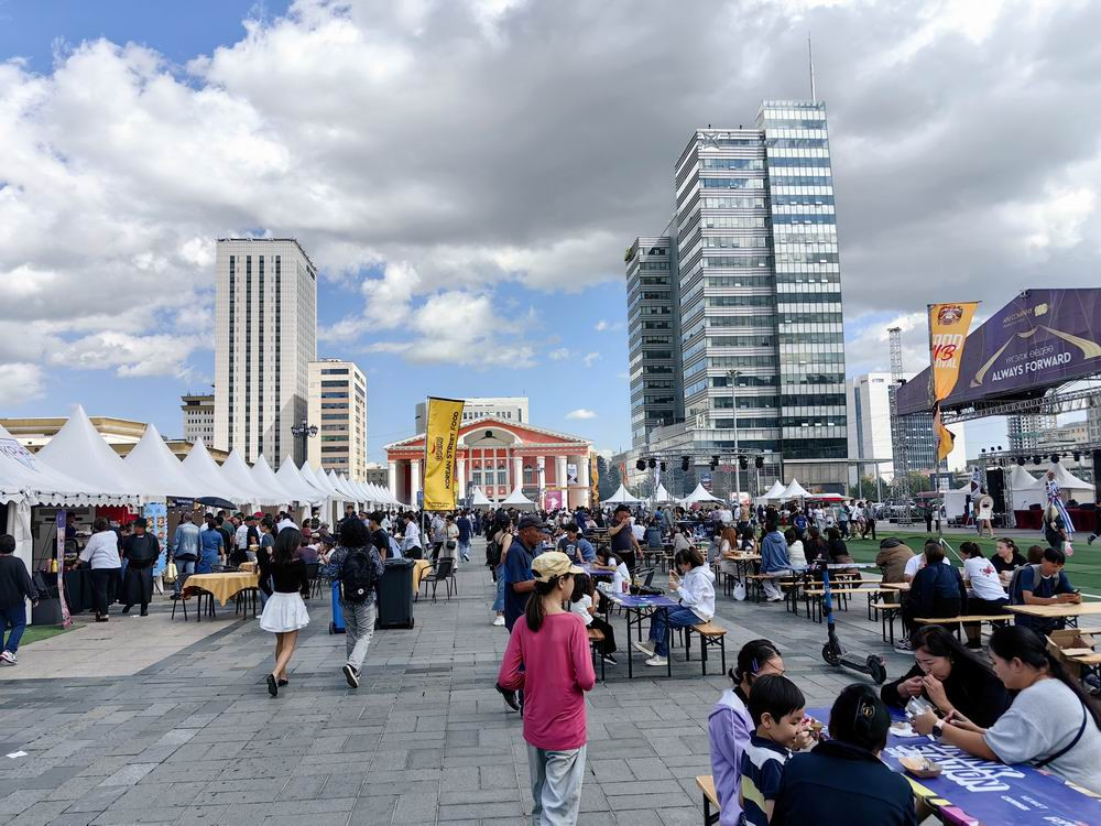 我们去的时候,赶上了苏赫巴托广场上的美食大集。