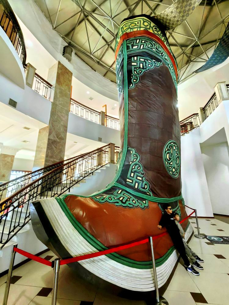 进入建筑映入眼帘是一只巨大的蒙古皮靴。
