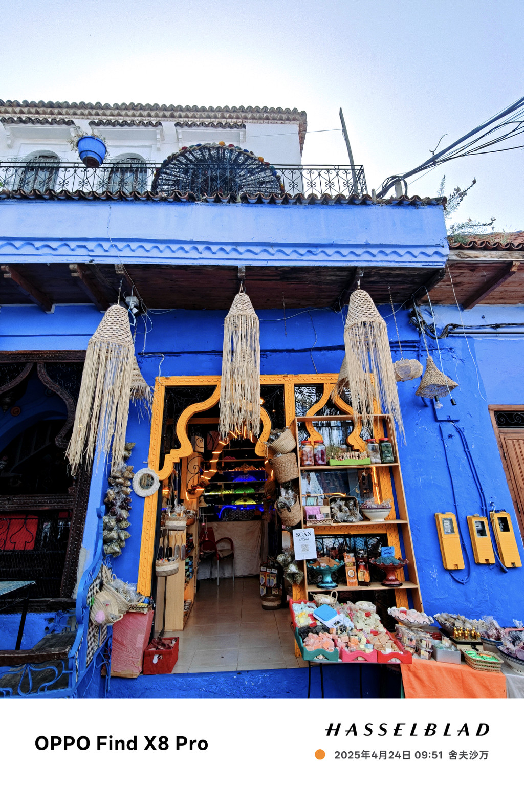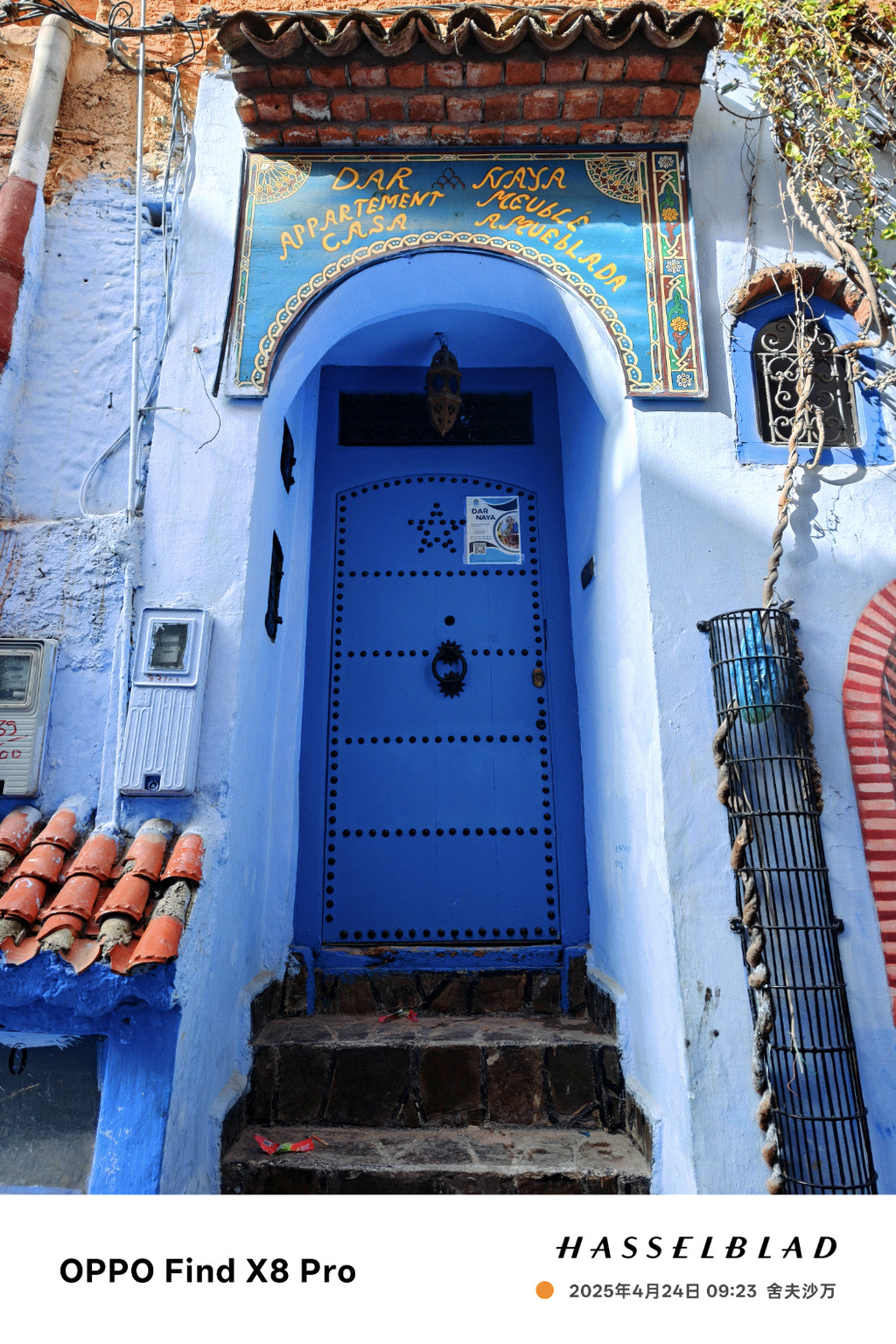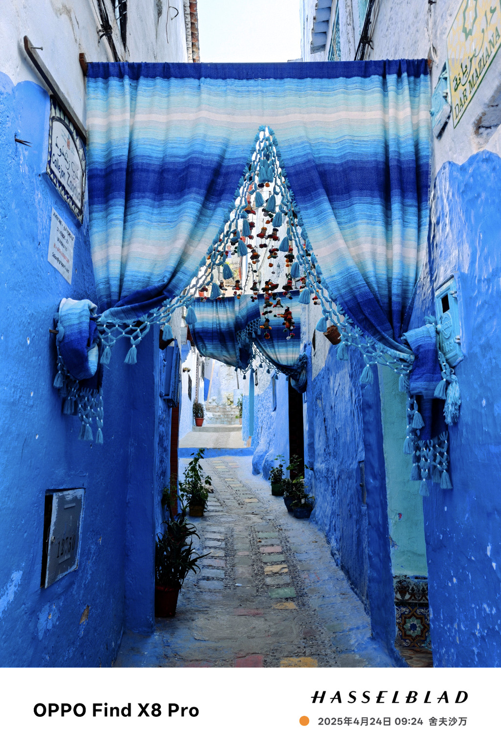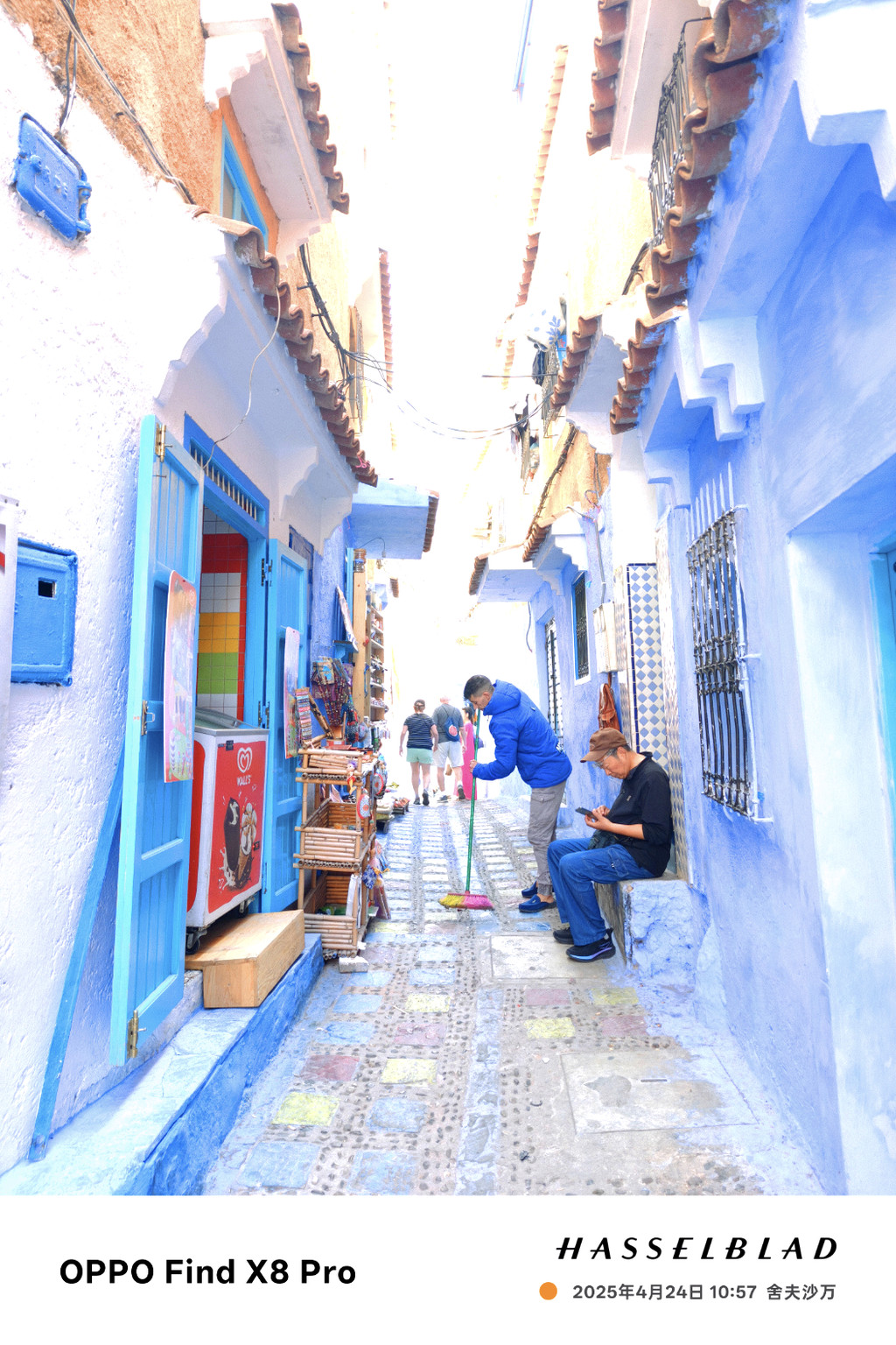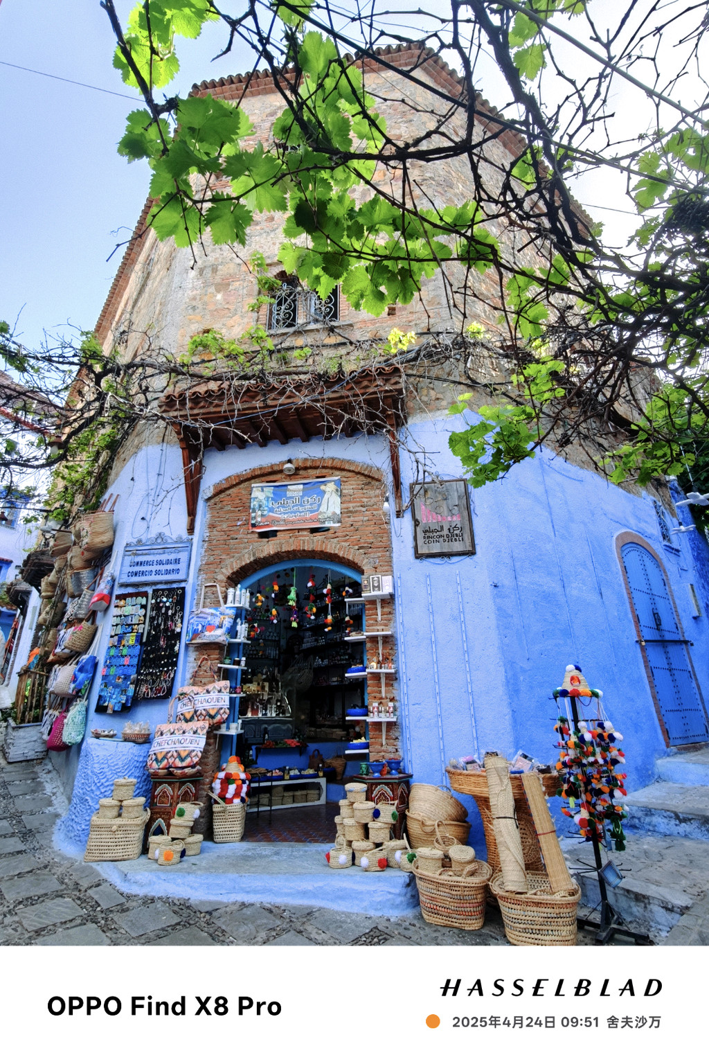 作为世界三大“蓝城”之一的舍夫沙万,小镇里的民宅、道路的阶梯,都被涂上了蓝色的颜料。