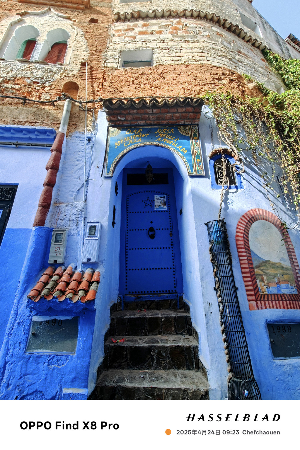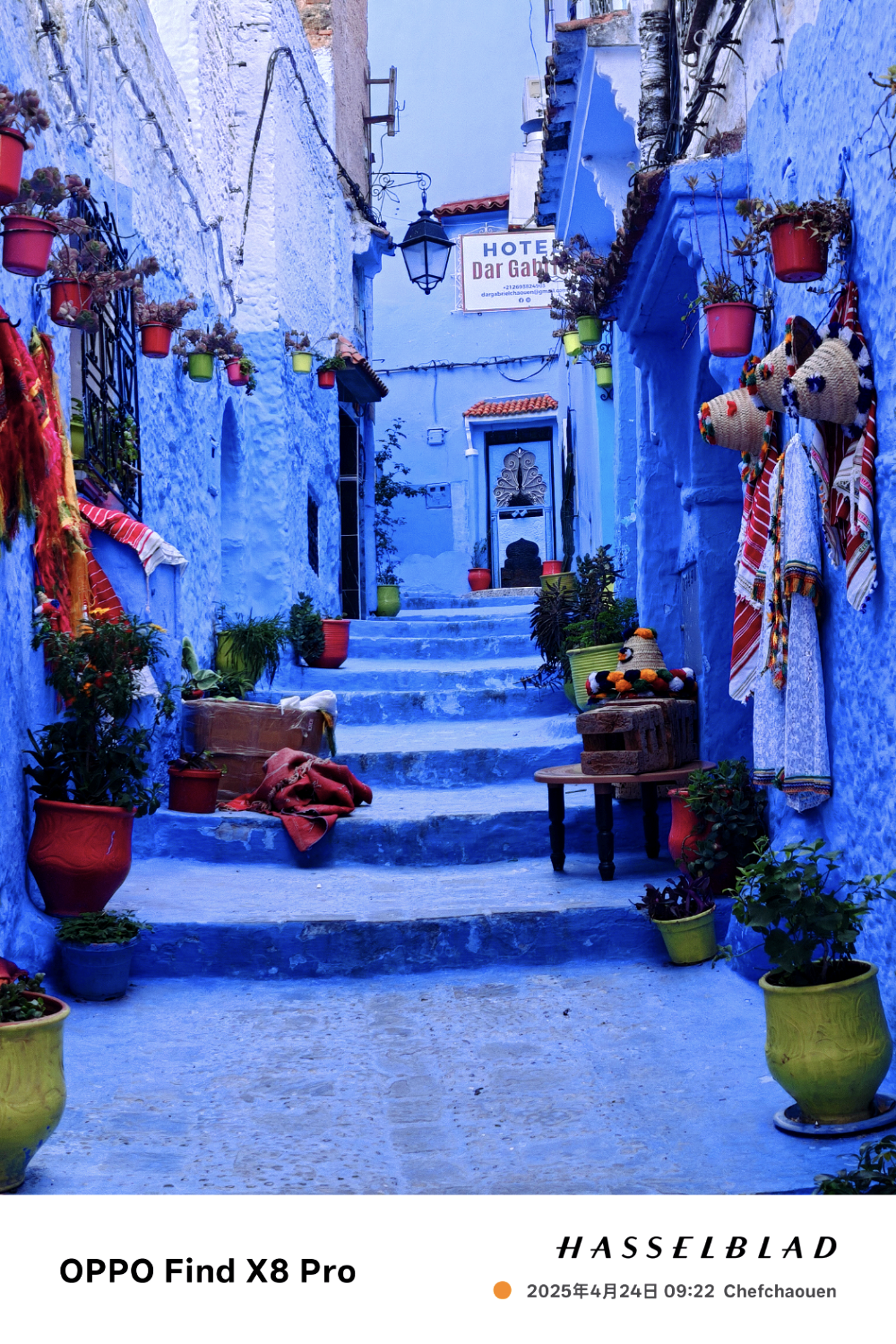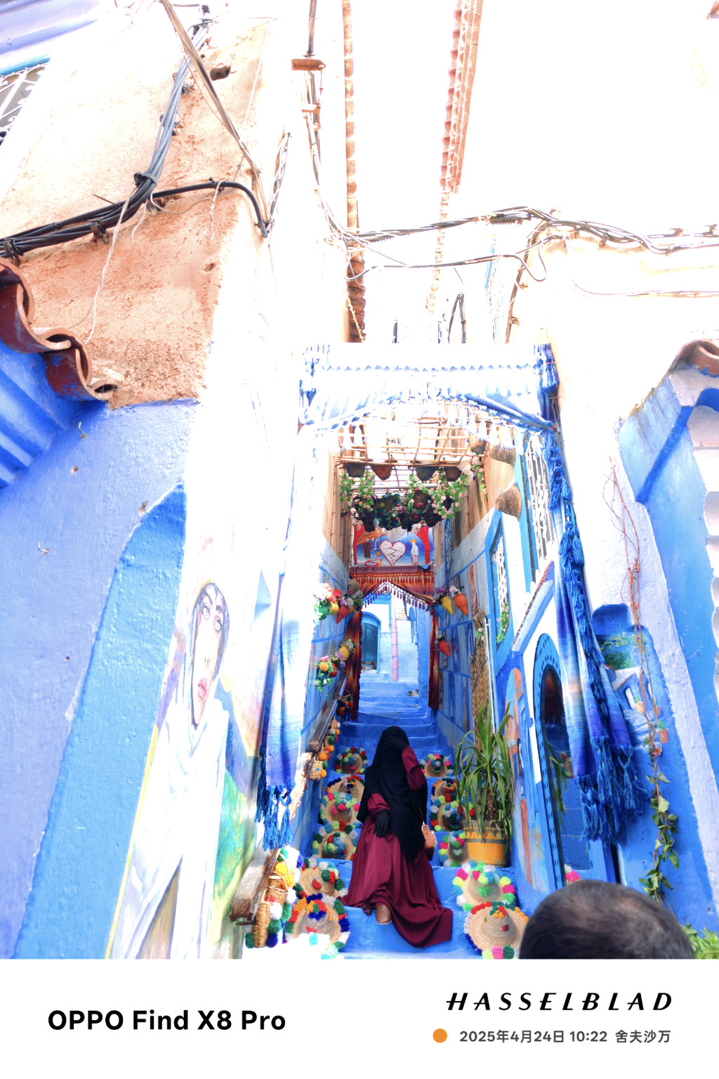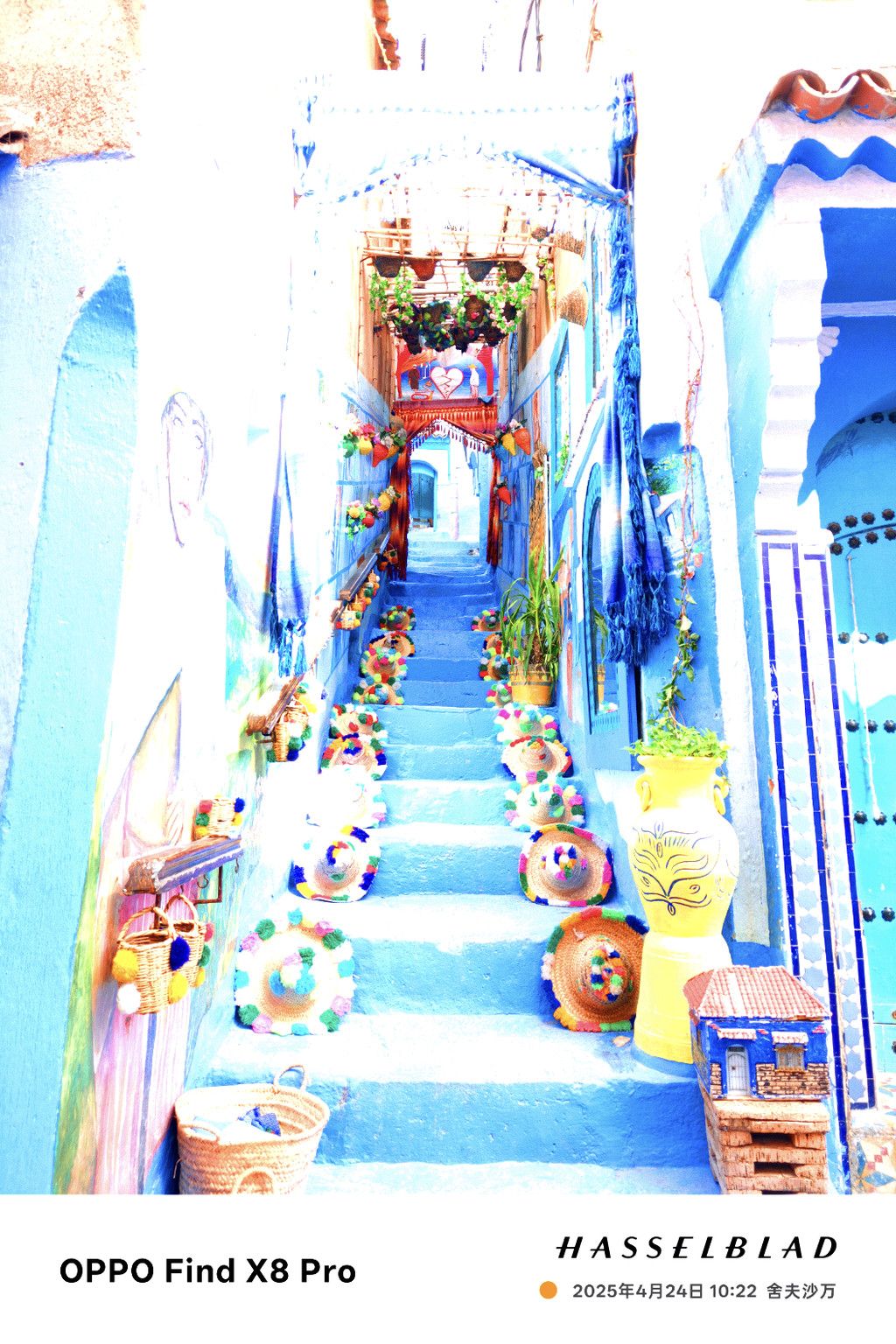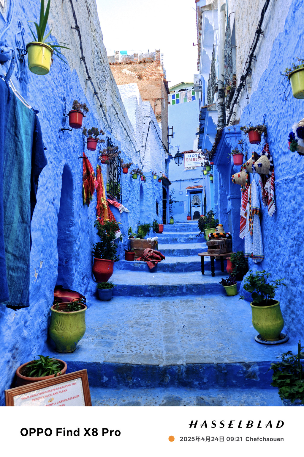 作为世界三大“蓝城”之一的舍夫沙万,小镇里的民宅、道路的阶梯,都被涂上了蓝色的颜料。