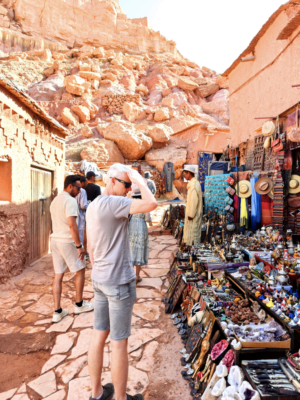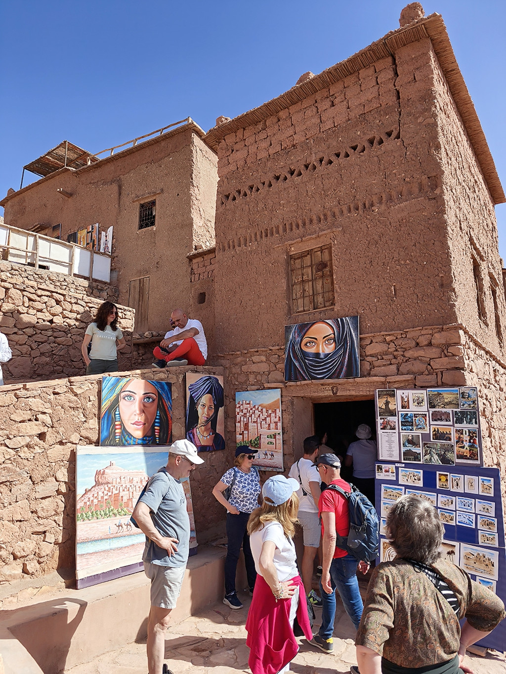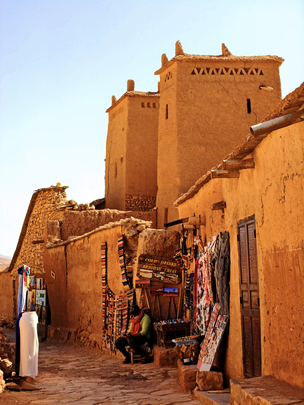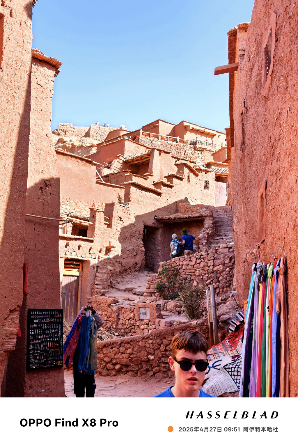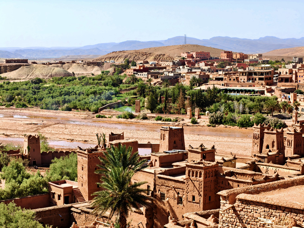 2025年4月27日早晨吃过早餐,前往阿伊特本哈杜筑垒村。阿伊特·本·哈杜筑垒村位于摩洛哥瓦尔扎扎特省,这个在摩洛哥南部的古城,曾经是古代的重要关口,虽然现在已差不多完全荒废,不过保留得相当完整,甚至还赢得了“摩洛哥最美村落”的称号。这个古城利用了摩洛哥特有的赤土泥砖建成,虽然城堡就如在沙滩玩泥沙砌堡垒般砌出来,不过整座城极之巨大稳固,难怪在古时足以抵御外敌。摩洛哥世界遗产地地理位置示意图阿伊特· 本·哈杜筑垒是一处于中世纪兴建起来的乡村防御工事,它地处摩洛哥南部高高的阿特拉斯群山之中,守卫着一条穿过撒哈拉沙漠的重要商业路线。几个世纪以来,这些利用烘干的泥土搭建而成的建筑物群一直是非洲最杰出的建筑精品之一,就像埃及的大金字塔一样,它们以其独特的方式展现了与众不同的魅力。这些建筑物的历史并不算悠久,据说它修建于12世纪,那正是柏柏尔人穆瓦希德王朝的鼎盛时期:在阿特拉斯山脉的北面,他们夺取马拉喀什后一直打到伊比利亚半岛,几乎占领了大半个西班牙;而在阿特拉斯山脉的南面,则控制着整个西撒哈拉。这座古堡,也许就是当年为“守护穿越撒哈拉大沙漠的重要商路”而修建的。阿拉伯语中它们被称为Ksar,翻译过来就是“设防的城堡”。