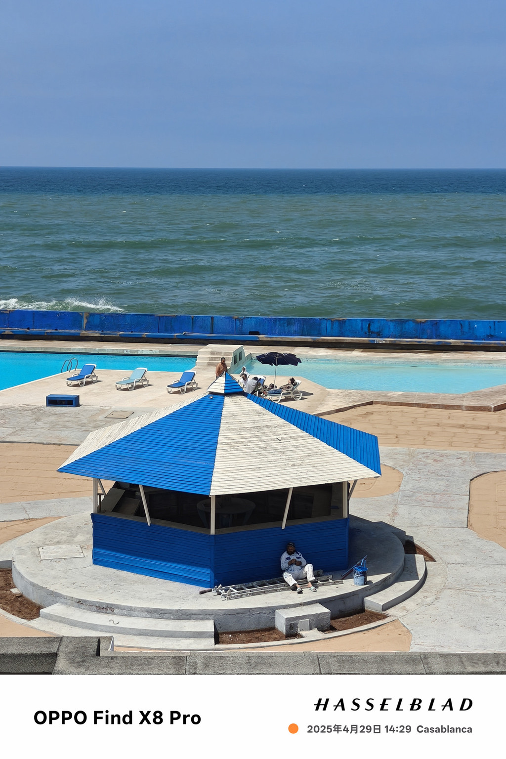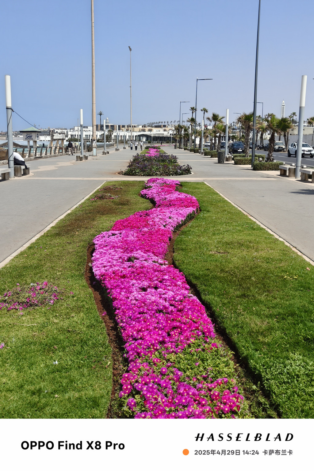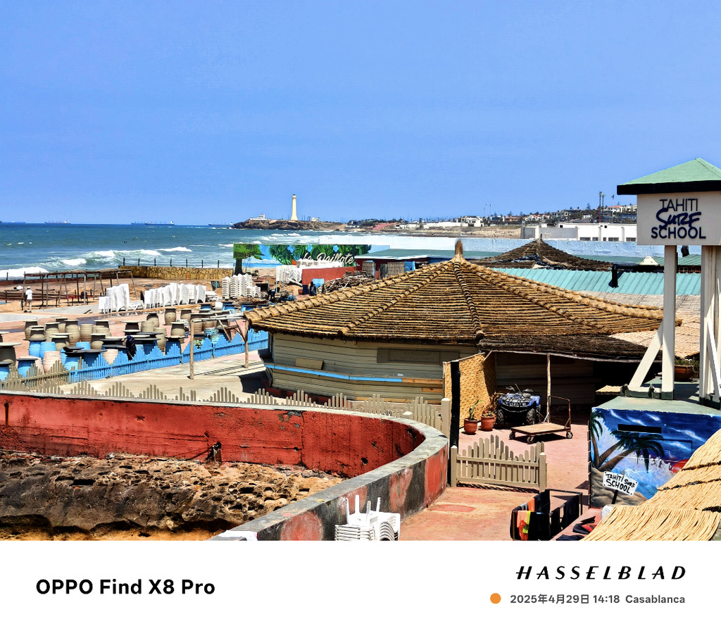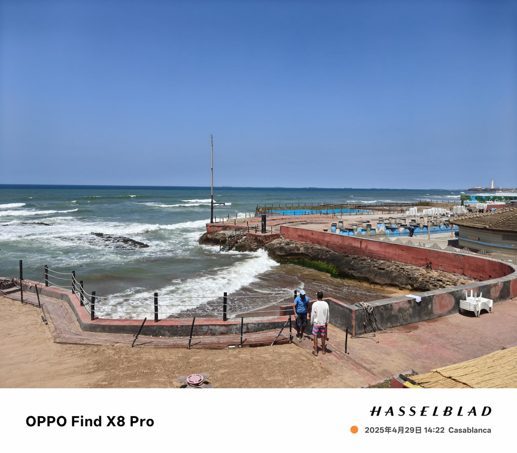 迈阿密海滨大道是一条宽阔的行车道,不临海的一侧是酒店、餐厅、酒吧,临海的一侧是宽敞的木栈道,从这里可以眺望蔚蓝的大西洋,对岸就是北美洲。木栈道下延伸向海滩的部分,是一排排的泳池、餐厅、咖啡座、酒吧……海水悠闲地地拍打着岸边,激起一道道白色的浪花,坐在海边发发呆,吹吹海风,还是十分惬意的。从迈阿密大道往哈桑二世清真寺方向望去,可以看到始建于1919年的El Hank灯塔。