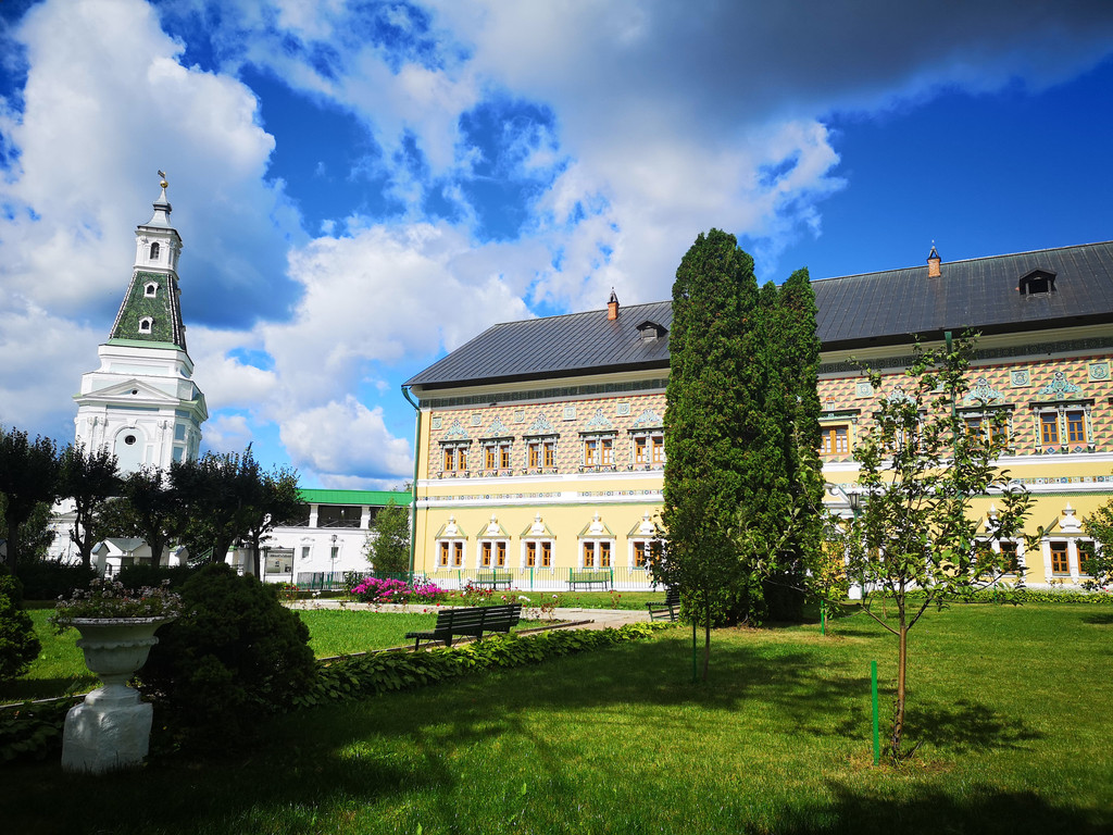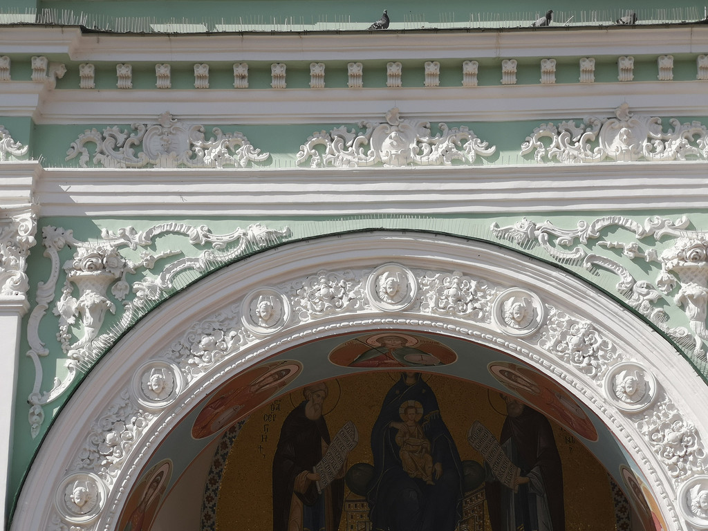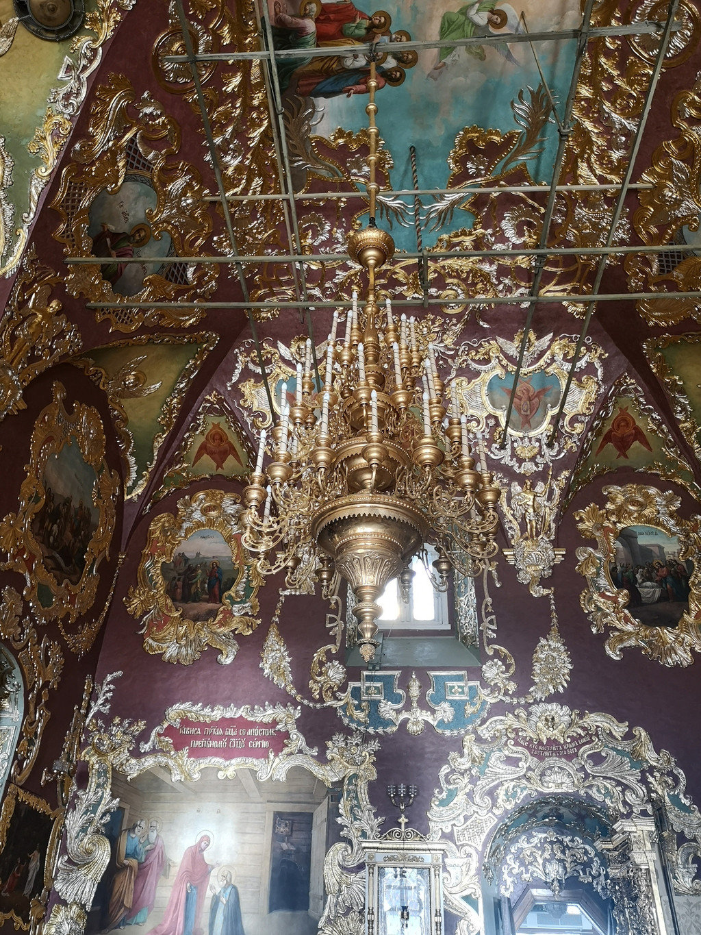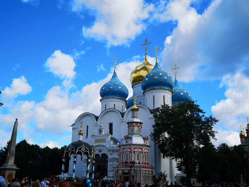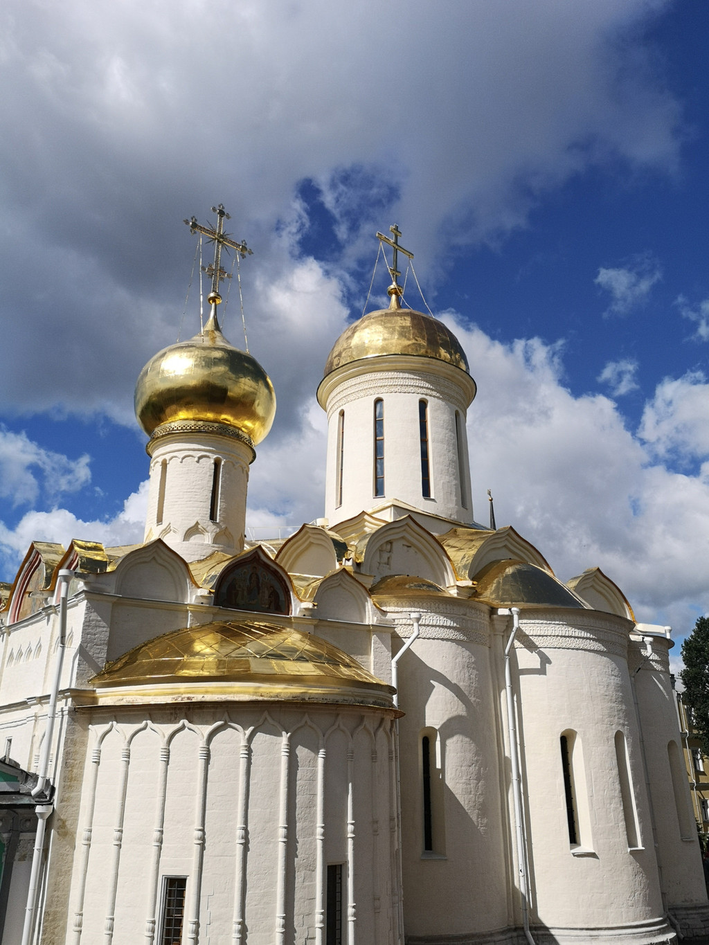 今天是正式俄罗斯旅行的第一天,今天 的行程是早餐后前往位于莫斯科东北70公里处的谢尔盖耶夫镇,造访★圣三一修道院,这是俄罗斯东正教最古老的修道院之一,是俄罗斯东正教会的精神中心。汽车到达修道院,只见门前广场上停满了旅游大巴,游客如织。数不清的鸽子自由飞翔,人们投食、拍照,好不热闹。我们跟随人流进入到修道院内,真是被眼前景象惊到。一座座风格迥异的教堂,环绕在广场四周,每一座教堂屋顶都不相同,洋葱头屋顶的教堂大多鎏金,在阳光和蓝天下特别耀眼醒目;哥特式尖顶屋顶的教堂,装饰繁复,非常美丽;整个修道院的建筑以金色、薄荷绿、湖蓝、白色、砖红、明黄为主。教堂内部的绘画和装饰精美无比,建筑外部的浮雕也让人流连忘返。我们的兴奋程度可想而知,也完全颠覆了在小说中描写中留下的我对修道沉闷、阴森、森严的传统印象。