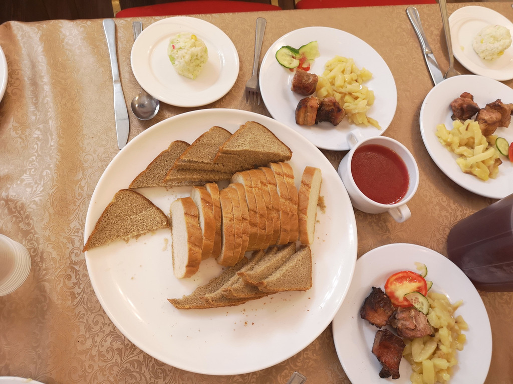 结束圣三一修道院的参观,我们来到 谢尔盖耶夫镇一家餐厅午餐。第一次吃上正宗的俄罗斯黑面包和番茄汤,同团好多人不习惯俄餐的味道,而我只是觉得面包太劲道,脸颊好累,味道我是接受的。