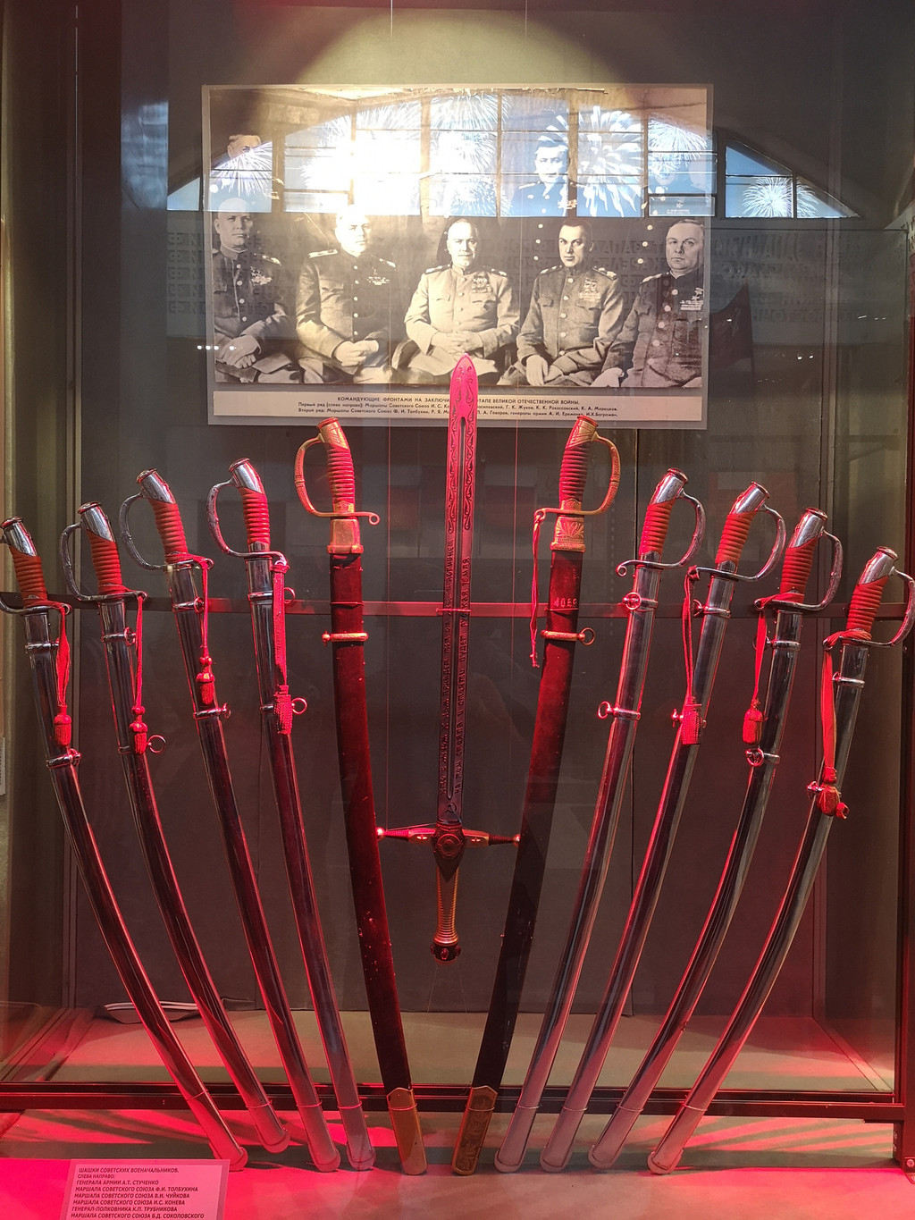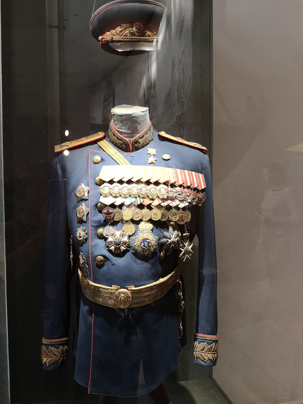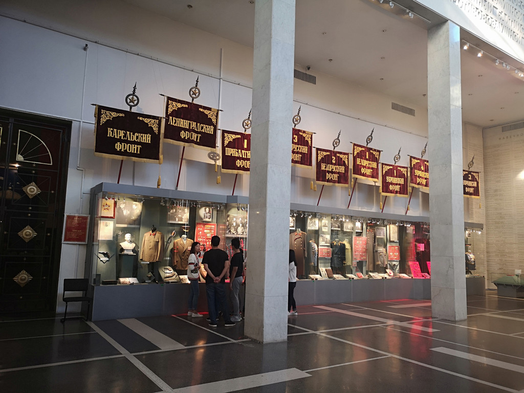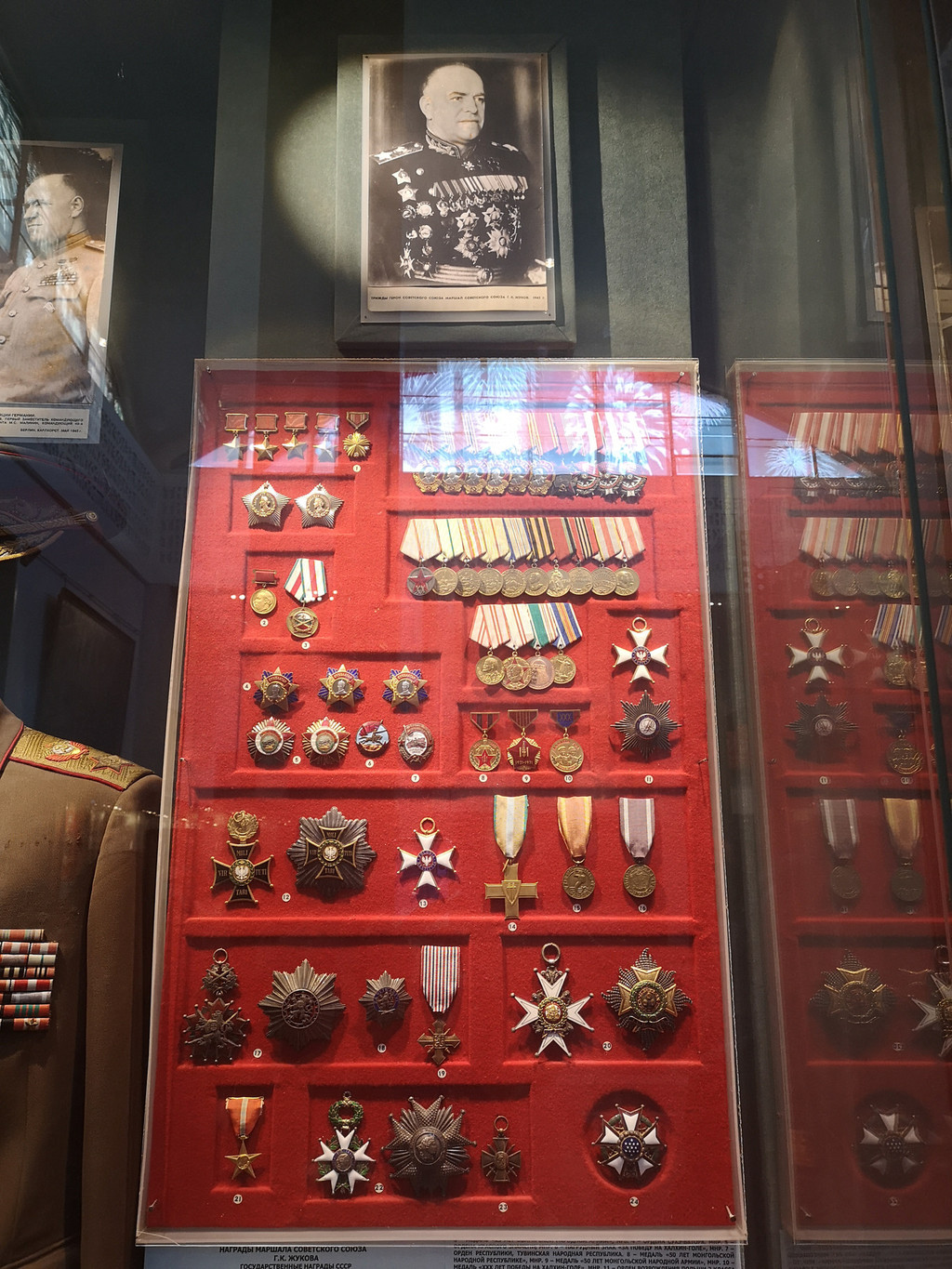 从弗拉基米尔古镇出来,我们去参观莫斯科国家军事博物馆,那里陈列了许多前苏联近代研发的武器,收藏了第二次世界大战时斯大林、朱可夫等元帅的军装、勋章、战刀。