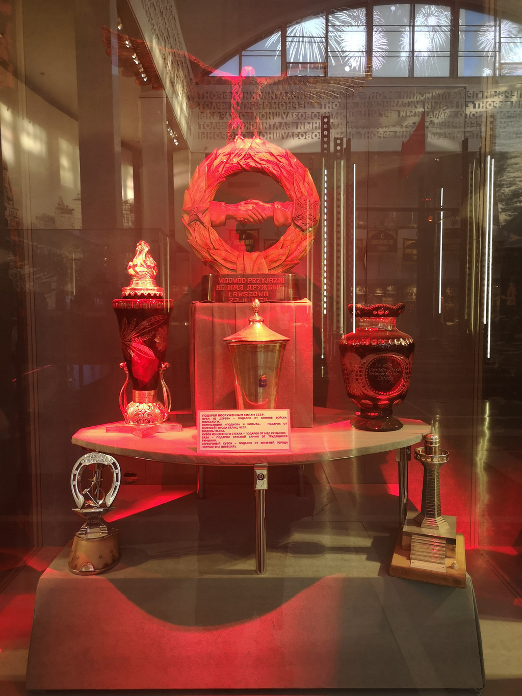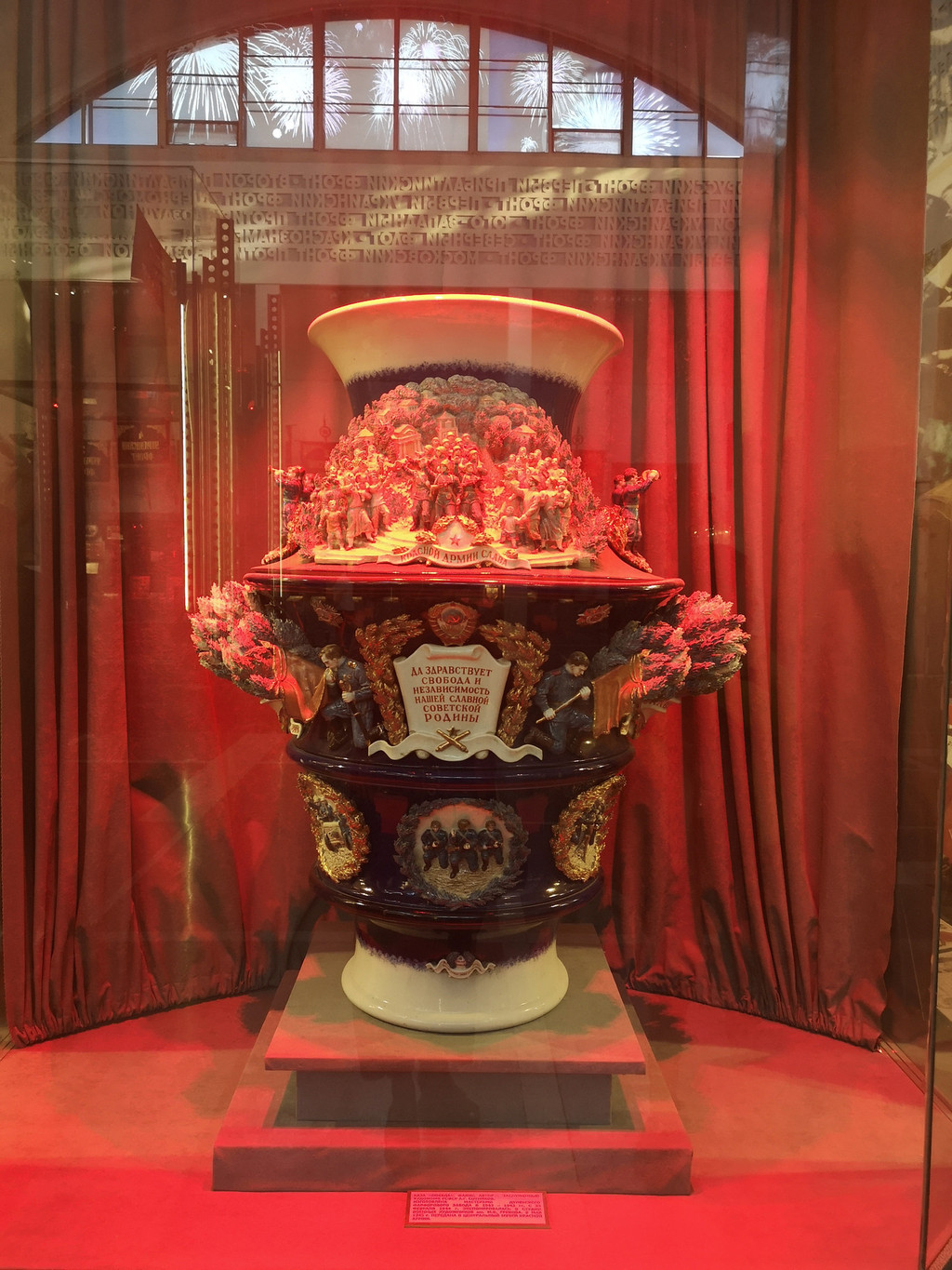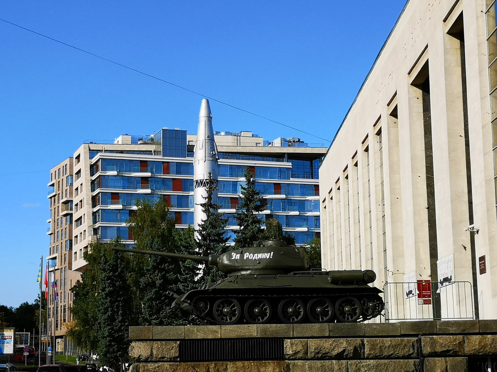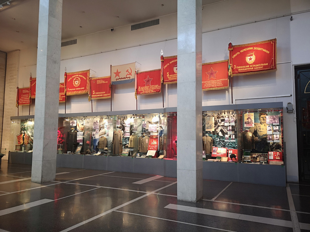 从弗拉基米尔古镇出来,我们去参观莫斯科国家军事博物馆,那里陈列了许多前苏联近代研发的武器,收藏了第二次世界大战时斯大林、朱可夫等元帅的军装、勋章、战刀。