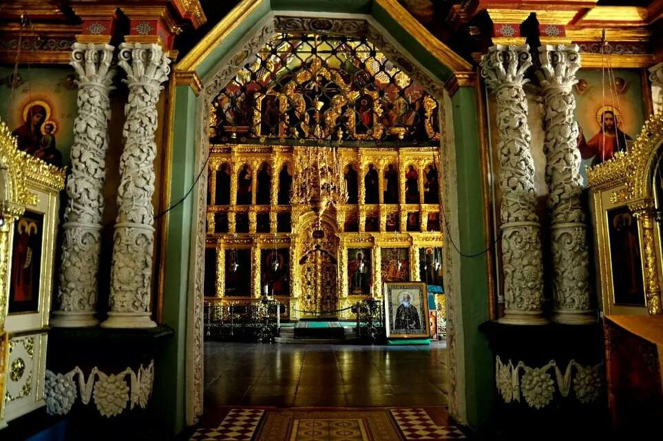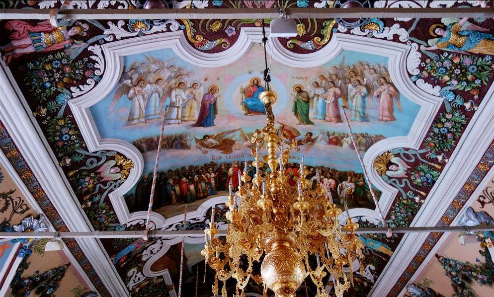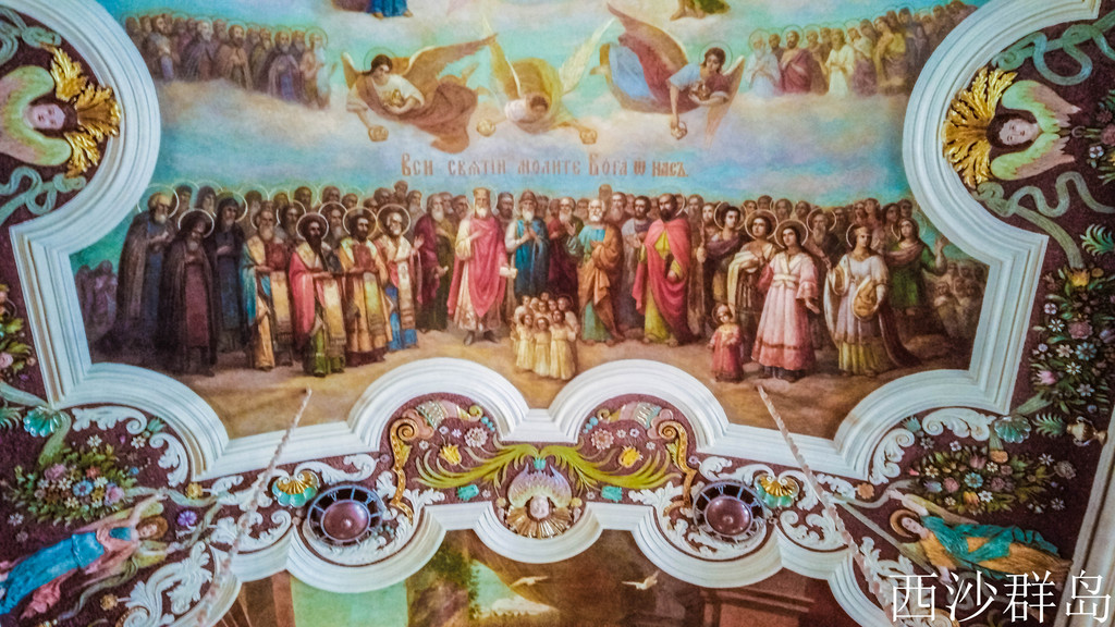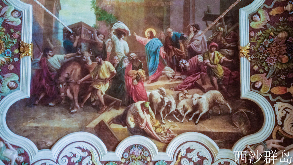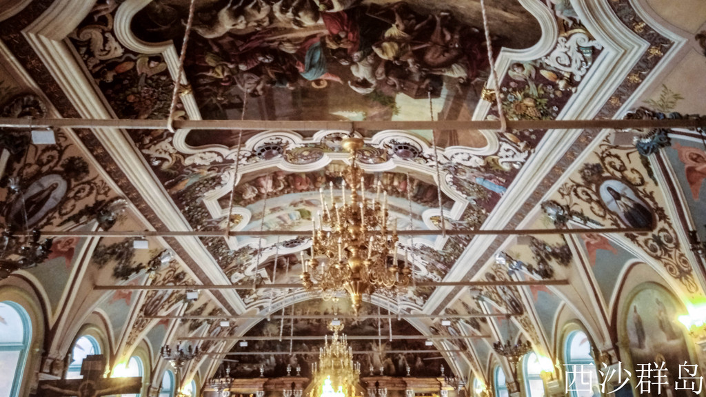 教堂内的水彩壁画绘制于1684年,与圣像壁富丽堂皇的镀金雕刻相得益彰。
