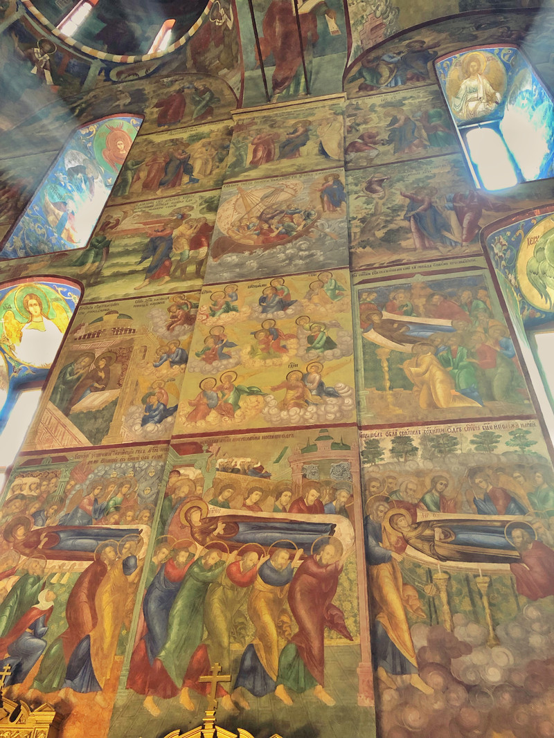 所有的墙壁、柱子和拱顶都画着教会的历史,大部分壁画描绘了圣母安息之景。