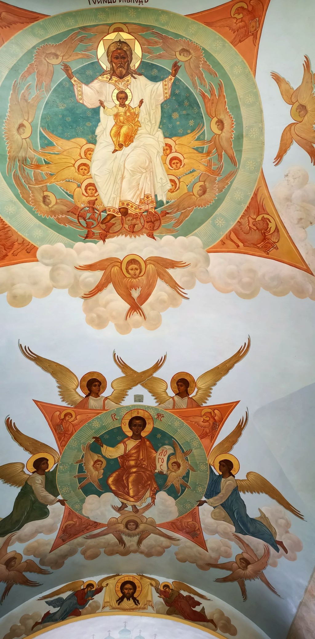 头顶上全是宗教壁画,天顶圣经画-耶稣、圣母、圣徒与天使群