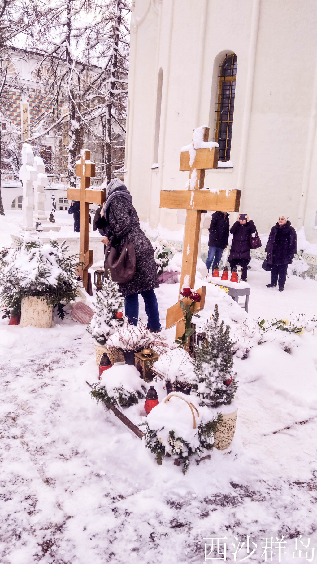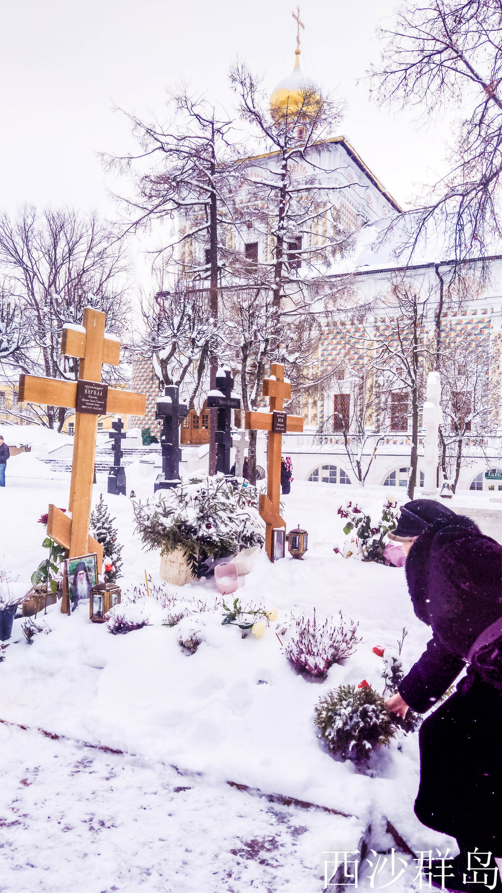 圣诞节临近,前来瞻仰献祭的信徒比较多,我们排队进入瞻仰。游览过程一直看到雪地里长长队伍,等候瞻仰谢尔盖。