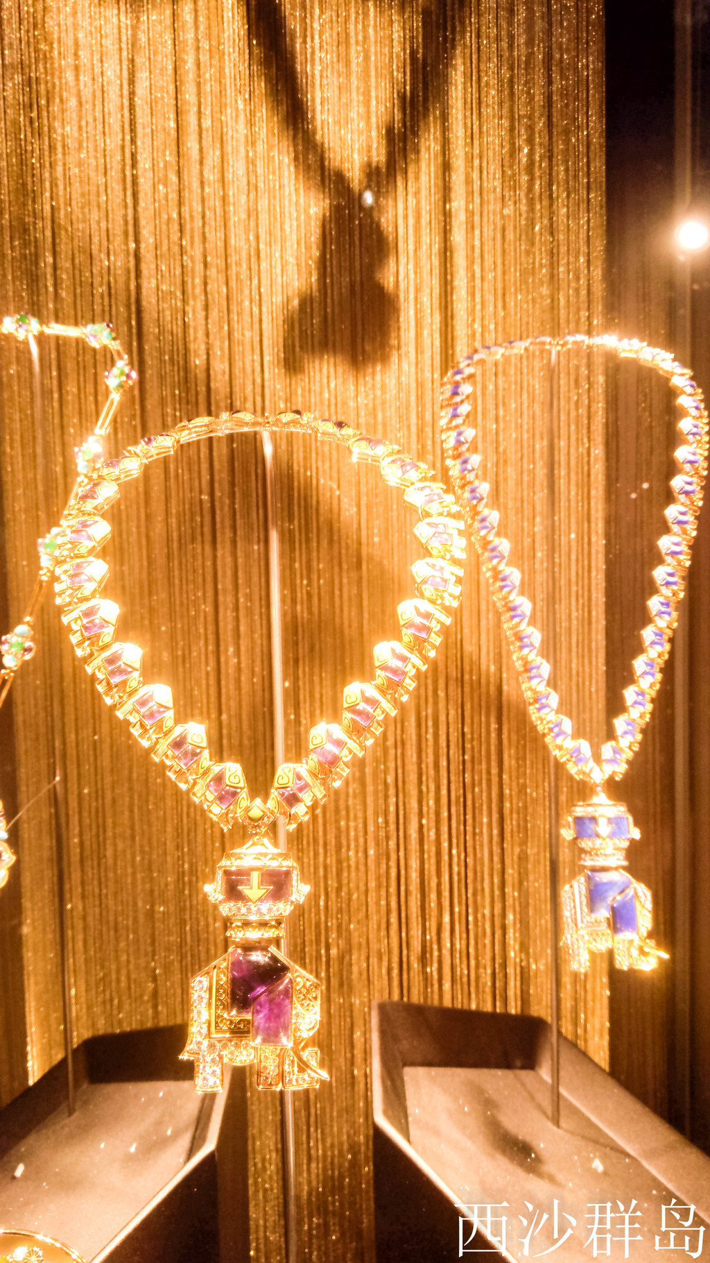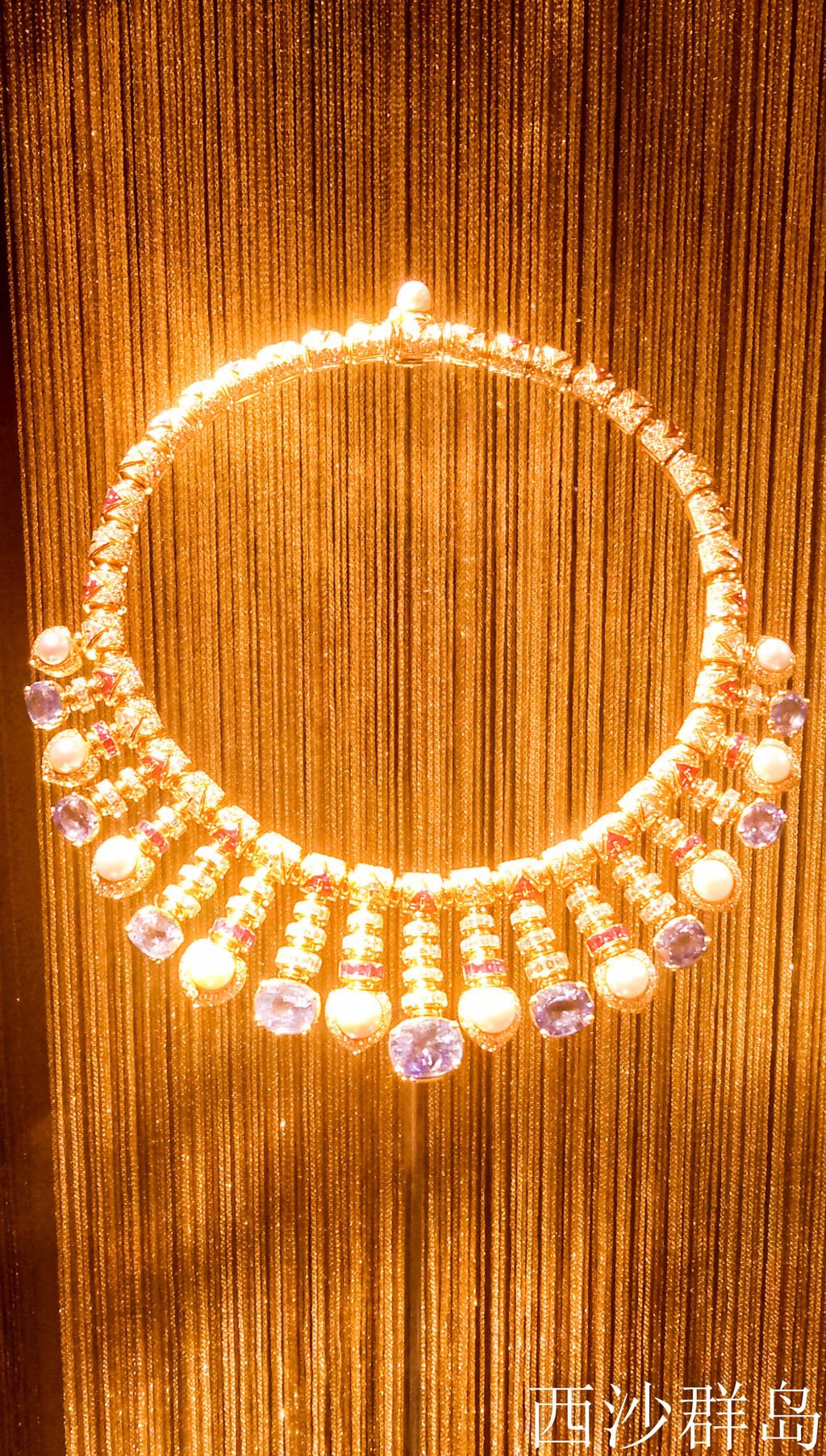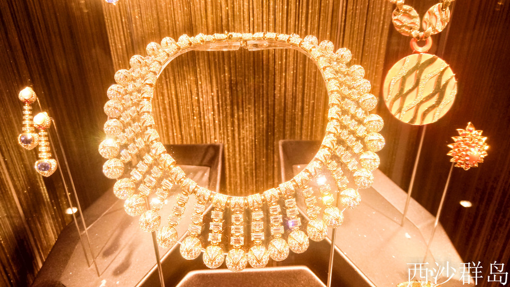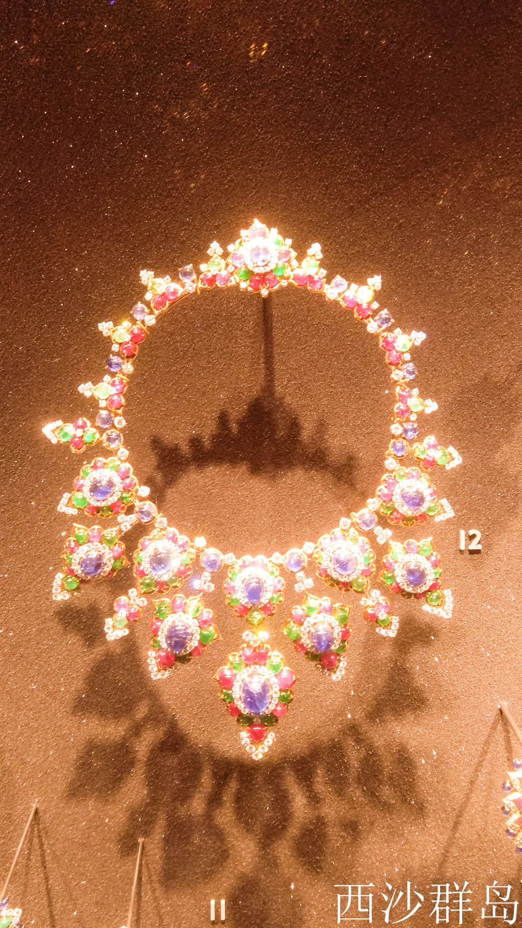 展出的金、银器皿、名贵珠宝,首饰,项链,精美绝伦