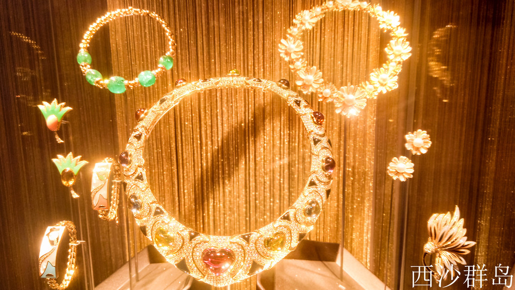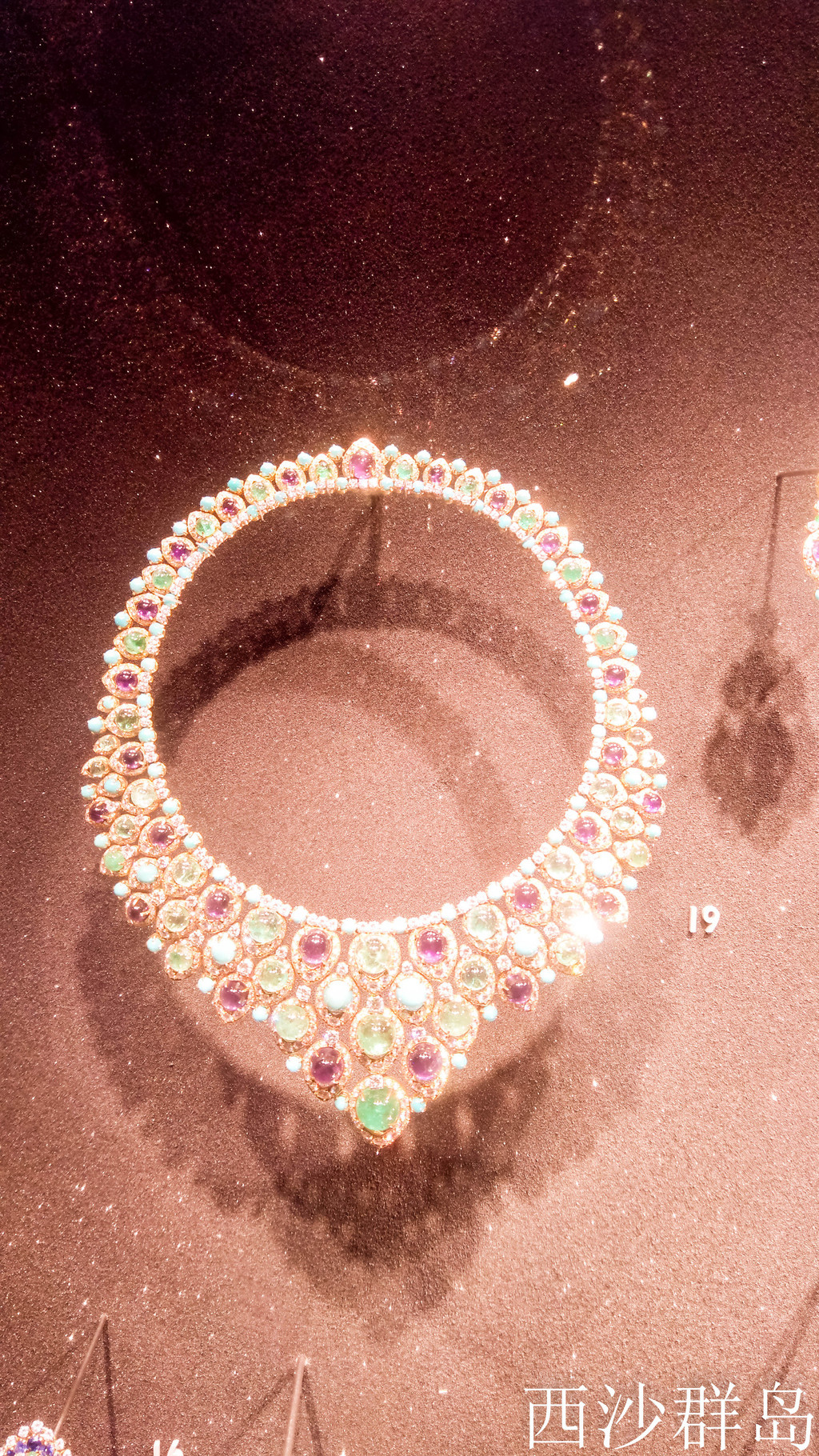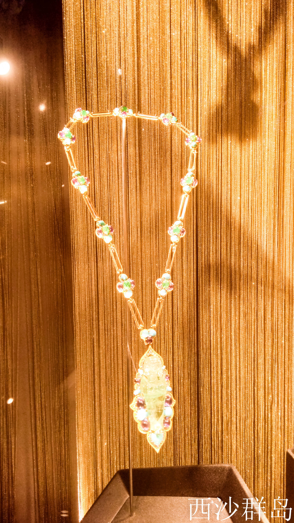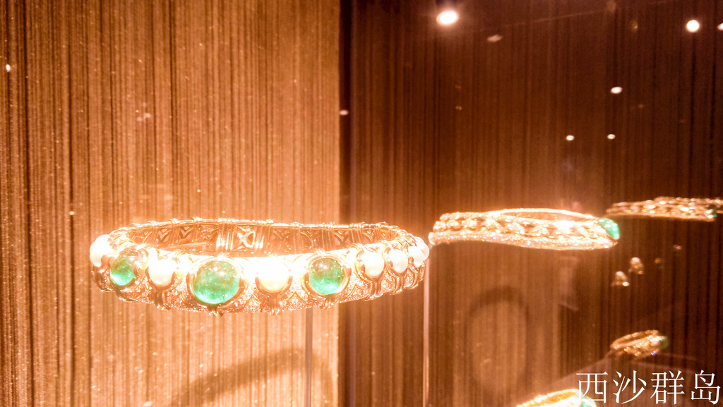 展出的金、银器皿、名贵珠宝,首饰,项链,精美绝伦