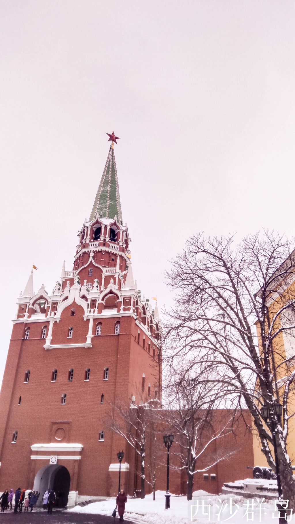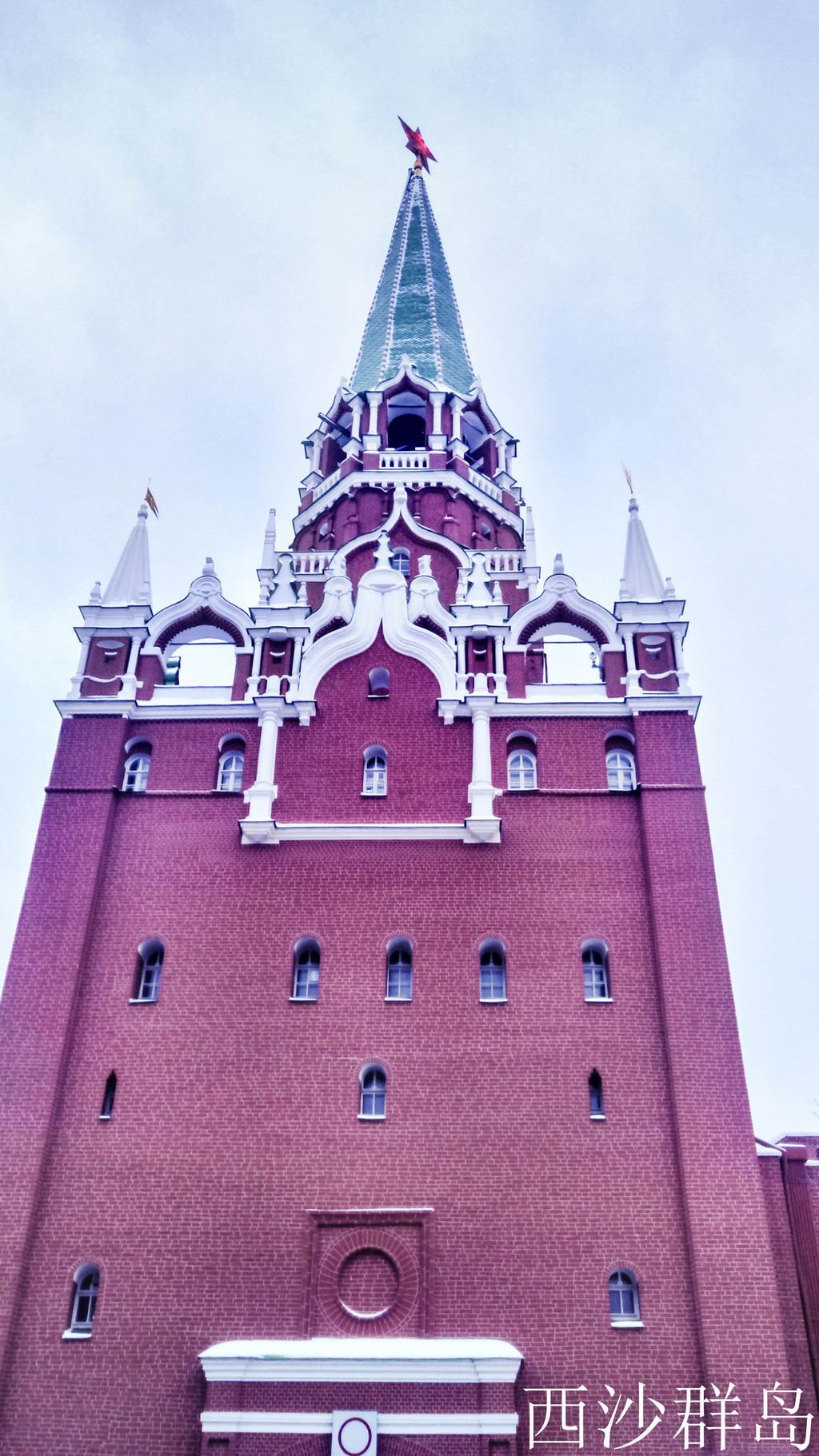 再通过的横跨护城河的桥,来到特罗伊茨克塔楼(也叫圣三一塔楼),高80米,是附近塔楼中最高的一座,下面的特罗伊茨克门是过去皇帝和军队凯旋时必经的大门,现在是克里姆林宫的主入口。16世纪到17世纪,塔底有一座秘密监狱。