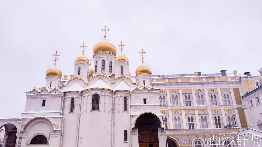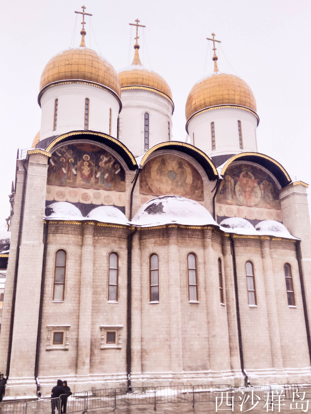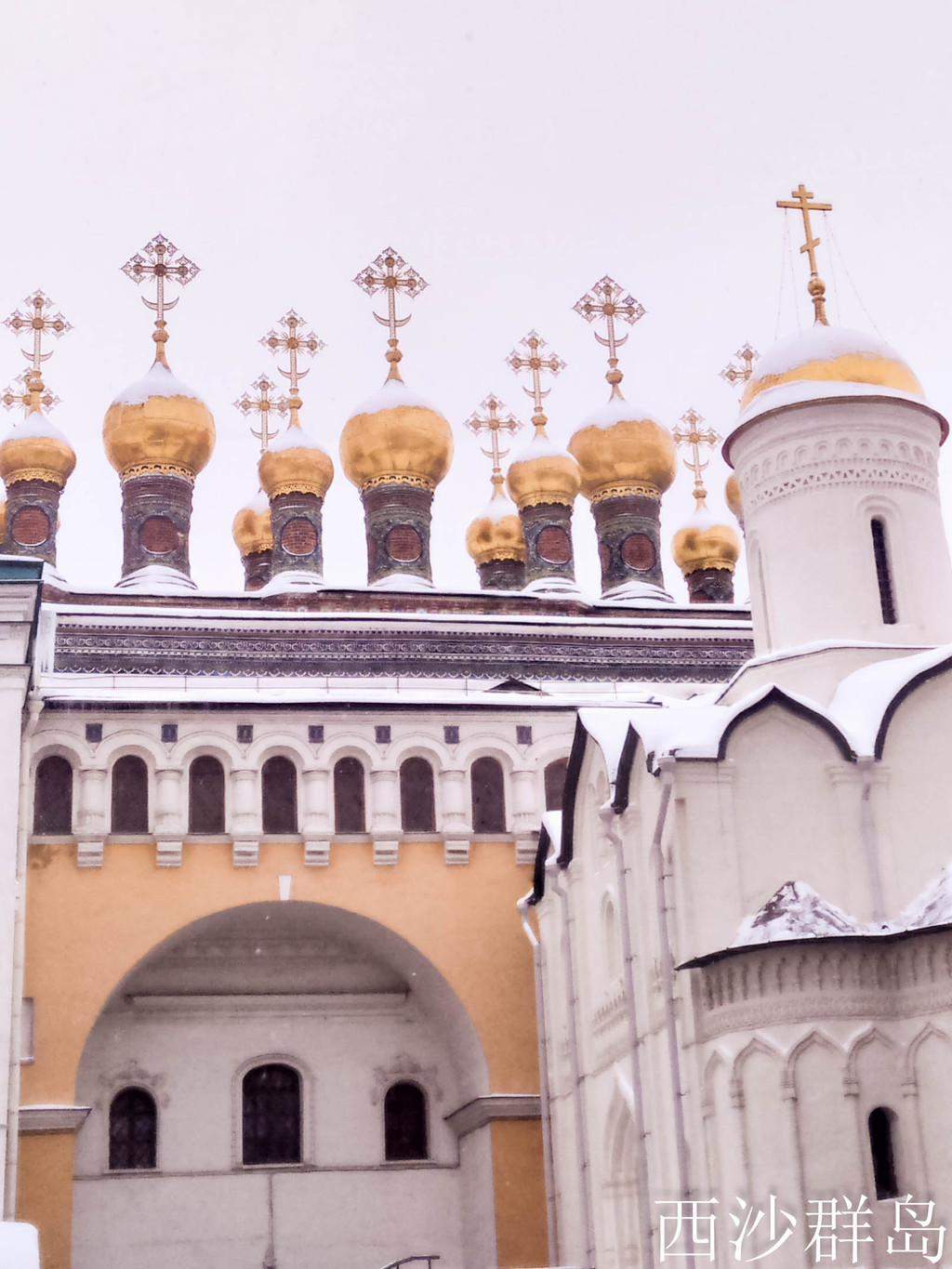 旁边的天使报喜大教堂,又叫圣母领报大教堂。是沙皇的私人教堂,作为皇族家属在此举行弥撒、婚礼及施洗等仪式的场地。