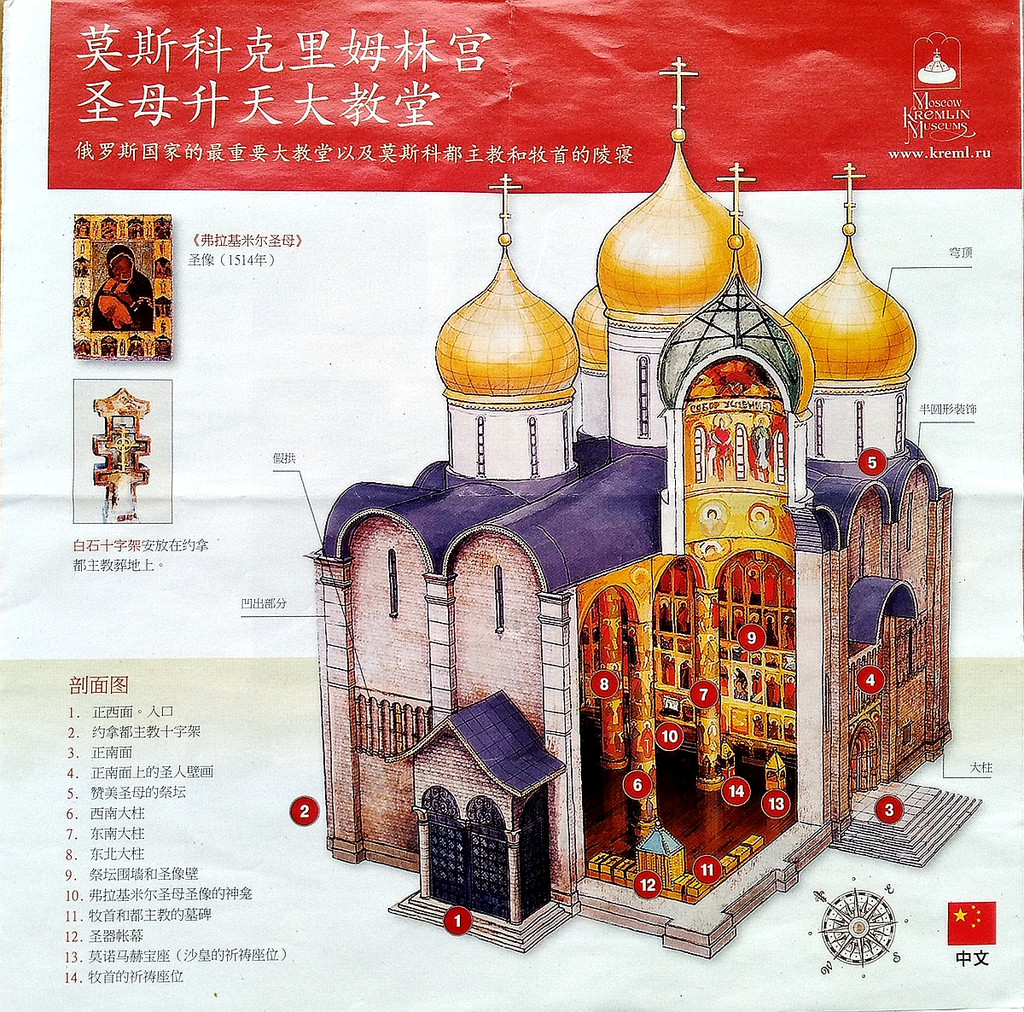 圣母升天大教堂是克里姆林宫内最古老的东正教教堂,为俄罗斯东正教的中心和圣地,几百年来,它被视为俄罗斯国家最主要的教堂。