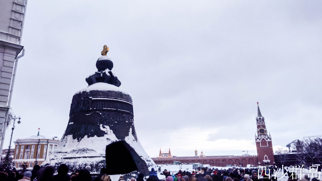 在伊凡钟楼前有一巨型大钟,即钟王,又称沙皇钟。它是世界上最大的钟,高6.14米,直径6.6米,重量达216吨。1737年,沙皇钟遭遇大火,部分损坏,再也无法发出声音。真是“沙皇炮未打过,沙皇钟敲不响”。