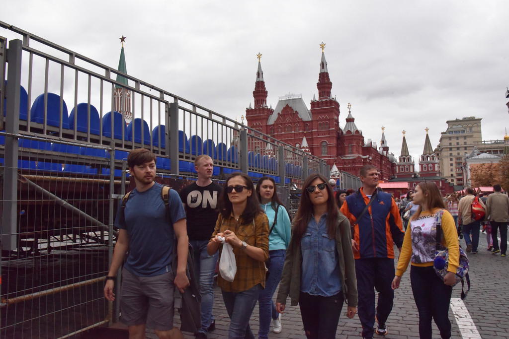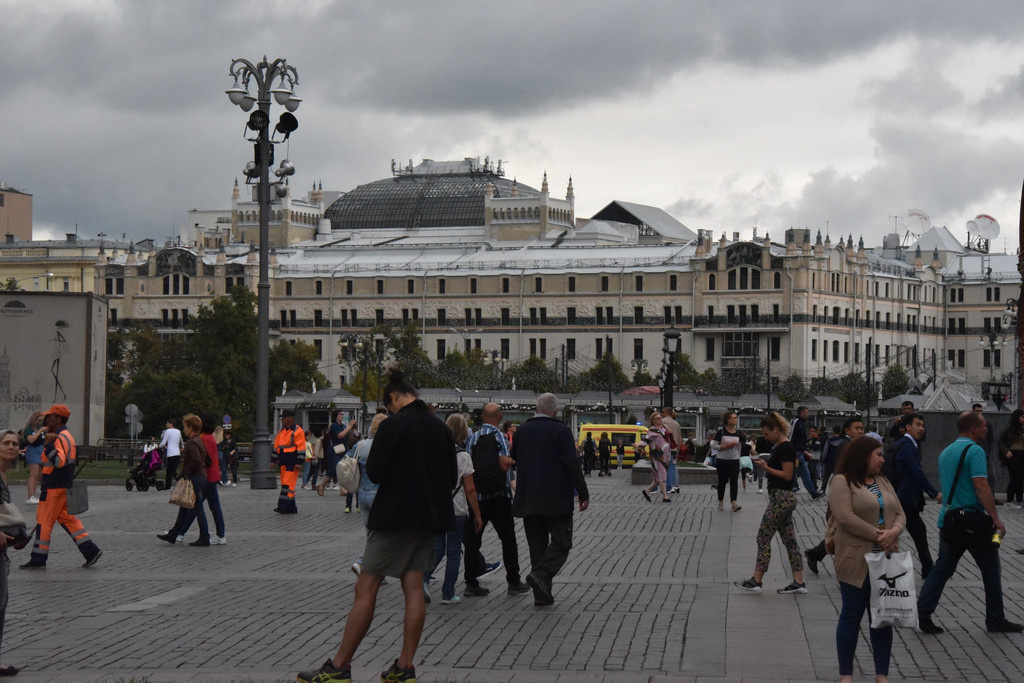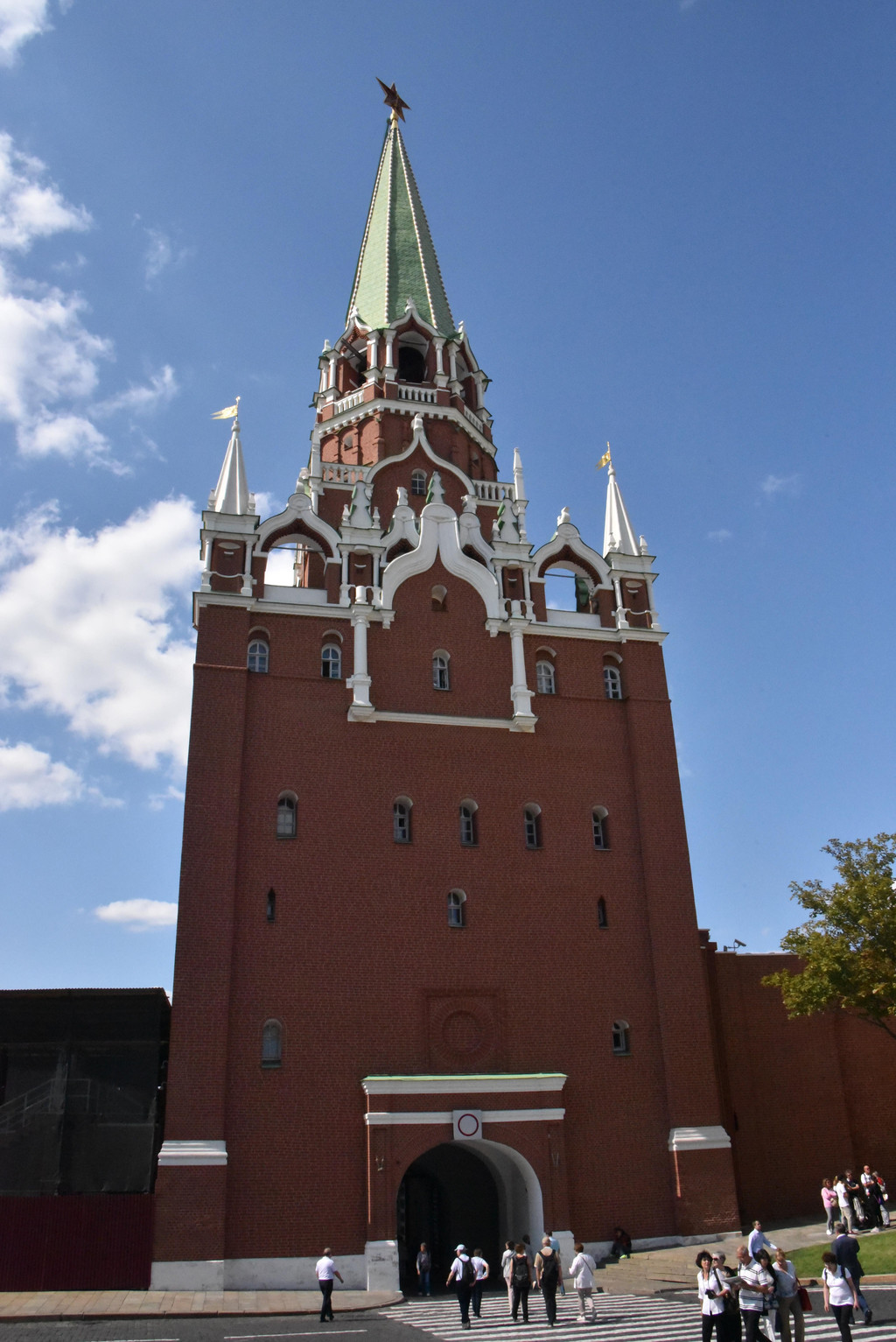 它的侧面就是俄罗斯阅兵入场的路线,沿着这条路走入红场,每年8月20日至9月11日,这里要举办国际军乐节,红场中要布置看台和舞台,需要提前围挡起来进行搭建,今天是16号,正是搭建期,红场的全貌无法看到,列宁墓也在围挡中,好在有很多地方围挡还开着口子,可以照相,