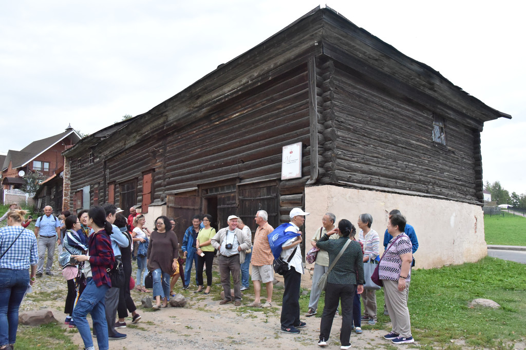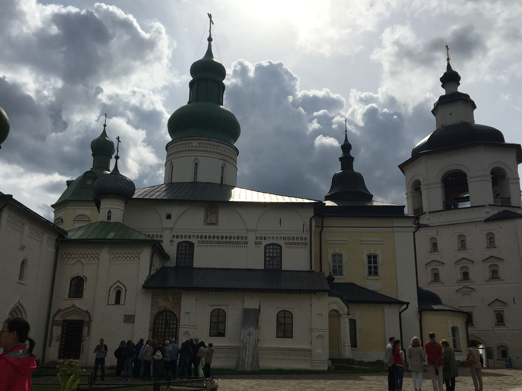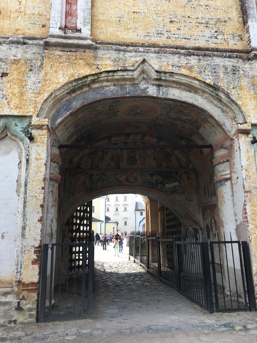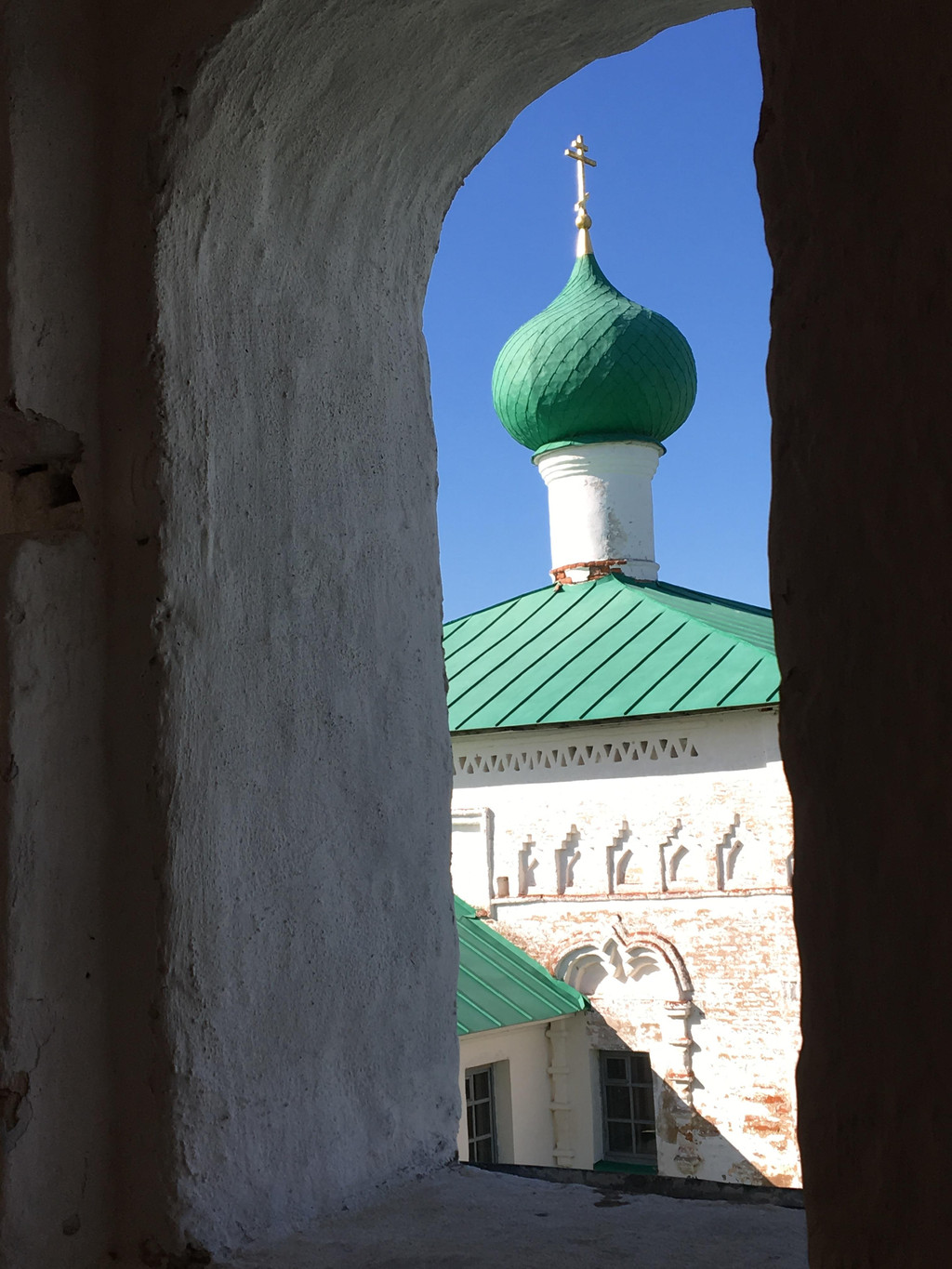 出门前行,到了我们要参观的重点了。乌格里奇是一座始建于公元937年的古城,俄罗斯历史上经历了两个沙皇王朝,留里克王朝和罗曼诺夫王朝,留里克王朝要追溯到公元862年,瓦良格首领留里克奥列格大公被邀请到这里管理和统治,开始了留里克王朝,这个王朝从862年创立到1598年结束共经历的736年,这其中包括了被蒙古金帐汗国(成吉思汗的后代)统治的240年,1480年,伊凡三世击败了蒙古人,使俄罗斯获得独立,伊凡四世伊凡雷帝1547年继承了王位并自称沙皇,这就是俄罗斯史上首位沙皇,死后将王位传给长子费多尔(在此之前死去的王子不算),这里距莫斯科不远,伊凡雷帝家族当时就住在乌格里奇,1591年,伊凡雷帝的小儿子德米特里王子在此地离奇死亡,七年后(1598年)德米特里的哥哥费多尔沙皇去世,因他没有子嗣,唯一有继承权的弟弟也先他而去,只能推举外戚继任沙皇,留里克王朝就此结束,开始了俄罗斯史上的大动乱时期(1598-1613)。有关德米特里王子死亡的原因有几个猜测,有说被刺杀,有说因癫痫发作不幸用匕首刺破了喉咙,德米特里身亡时年仅八岁,为纪念此事18世纪在沙皇家族当时居住的王宫对面建立了一座教堂-滴血教堂(俄罗斯共有三座滴血教堂,另外两座分别在圣彼得堡和叶琳堡),