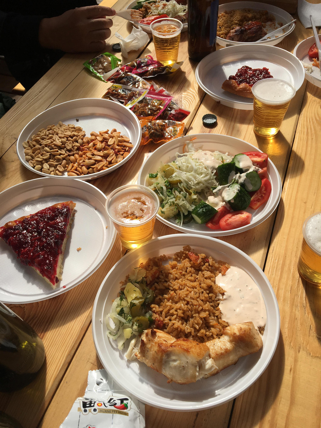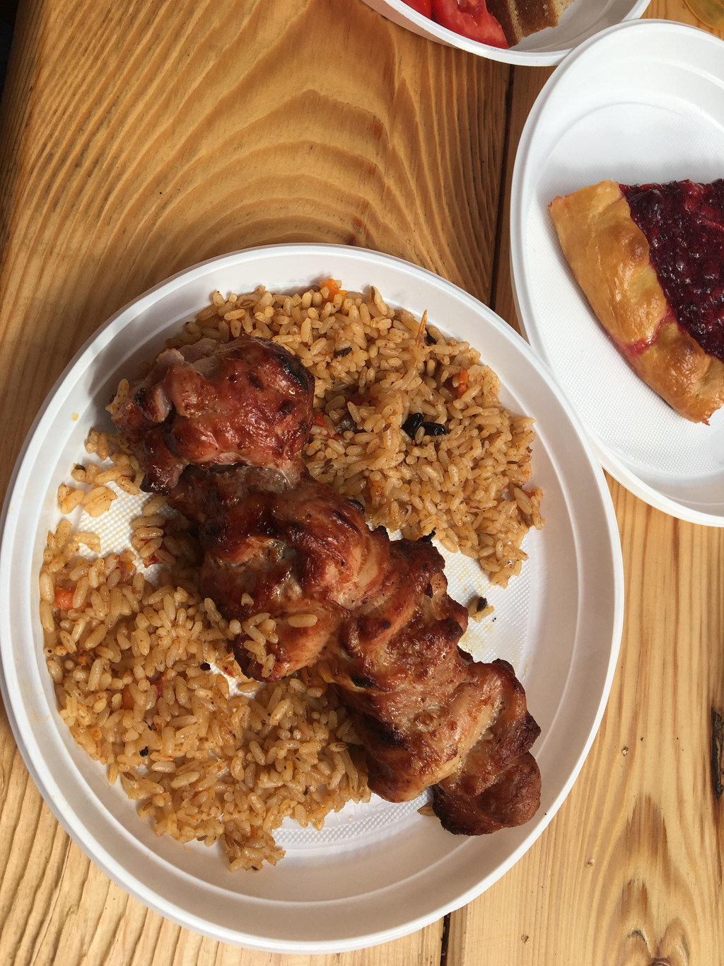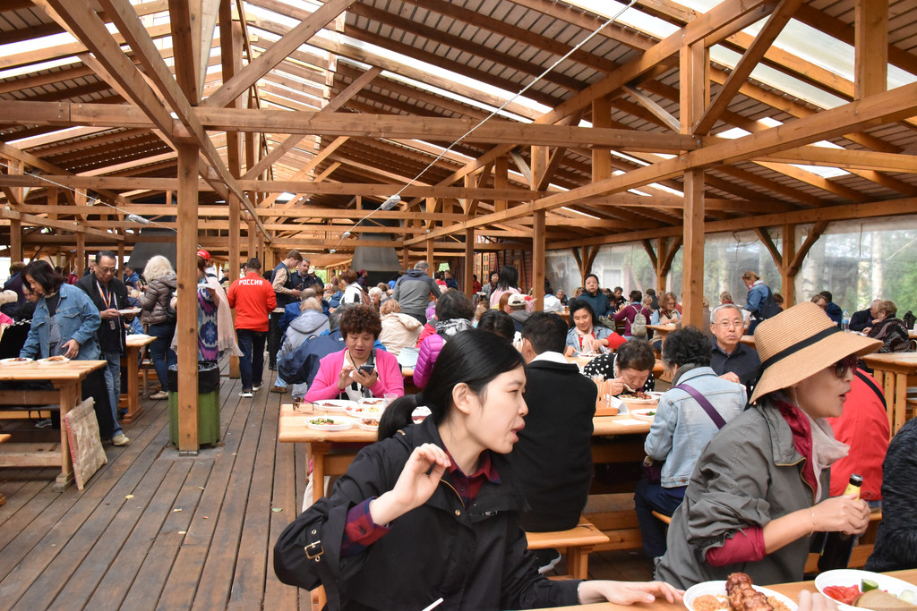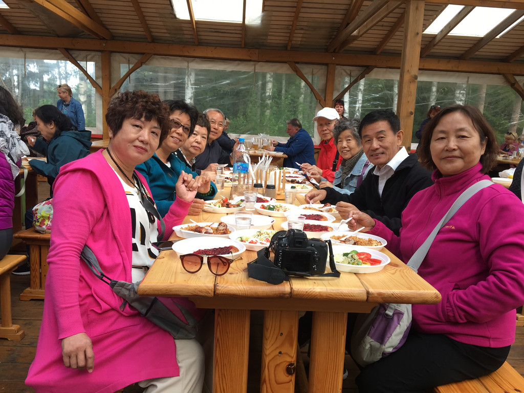 吃着西餐看着窗外,今天是周末,现在行走的正是莫斯科郊外(只是还没到晚巴晌儿),岸边多是休息的人群,或钓鱼,或野餐,或晒老阳儿,一派轻松欢快的景象。