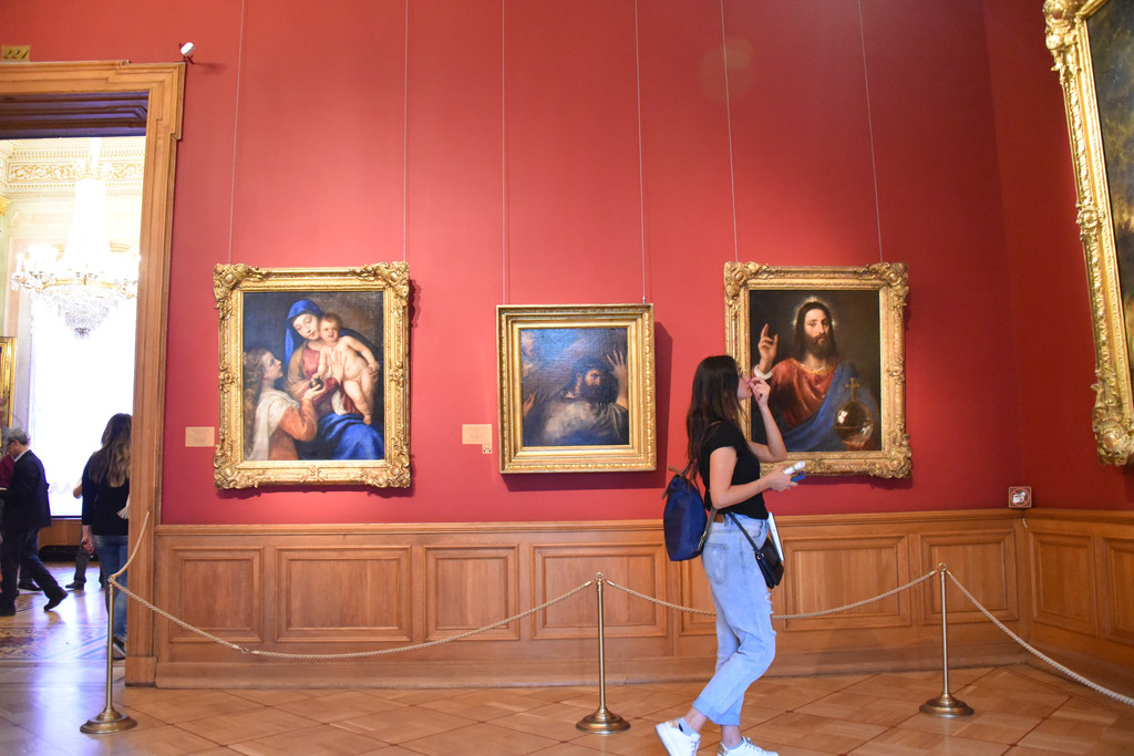 大冬宫主要以油画为主,一连串的穿廊有意大利文艺复兴展厅,有很多著名画家包括伦勃朗、提香的名作尤继福,忏悔的蒙马大,丹尼尔,