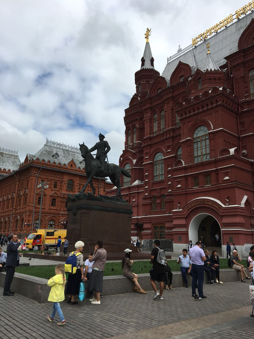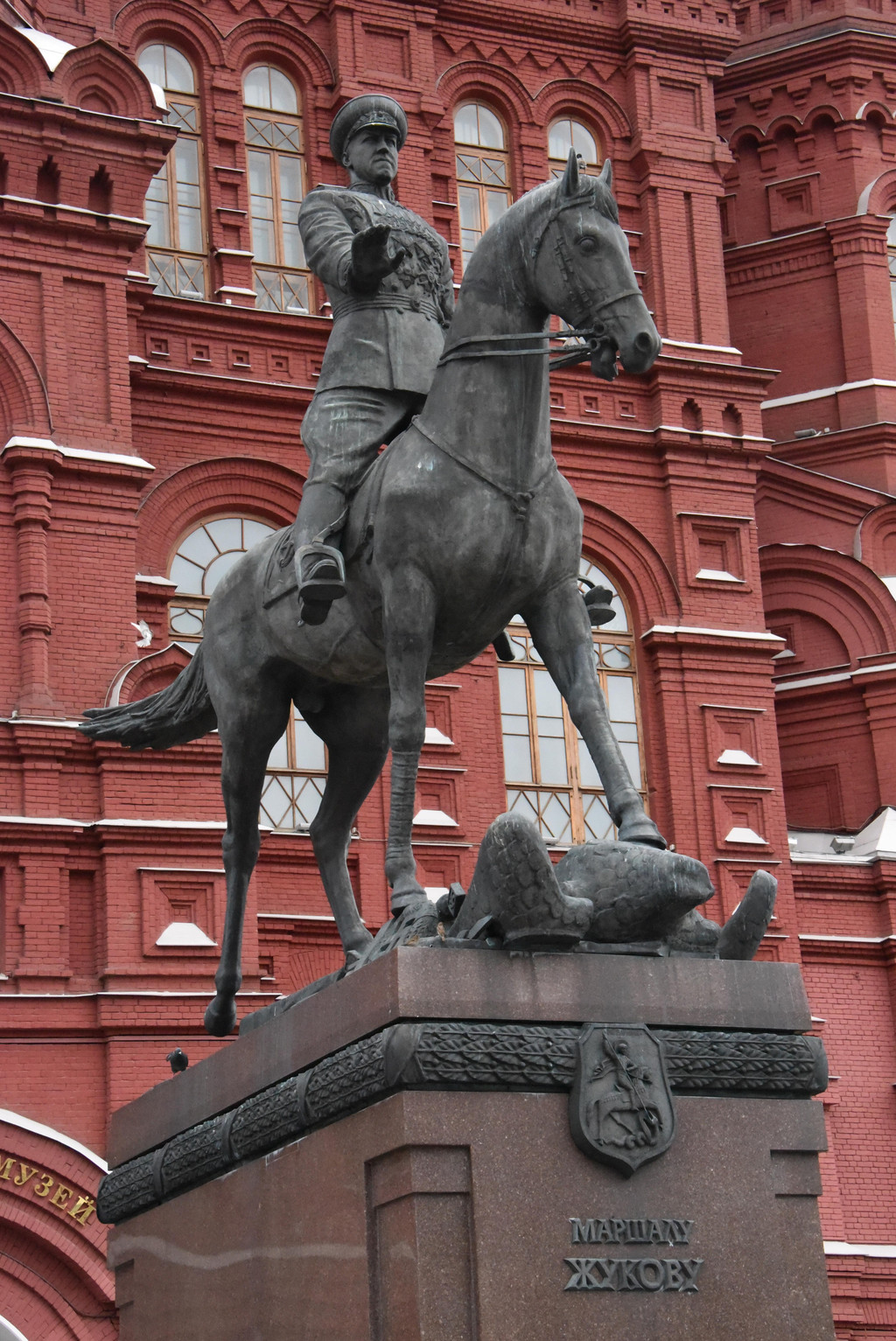 红场前是红色的国家博物馆,前面矗立着朱可夫元帅的骑马雕像,