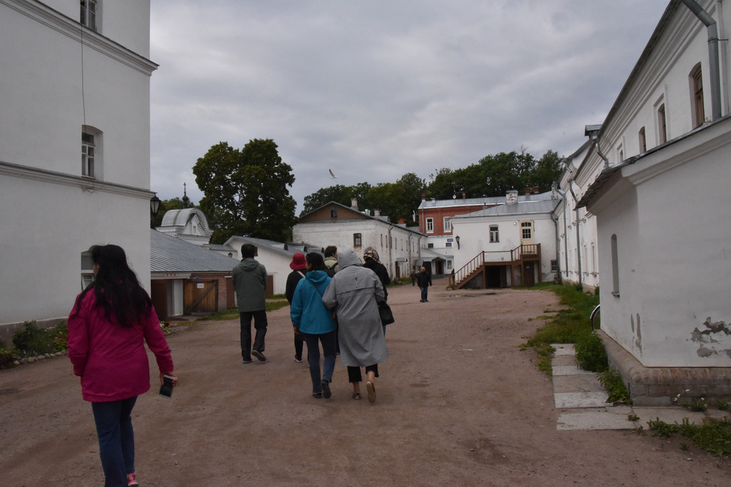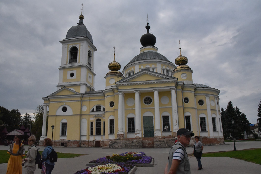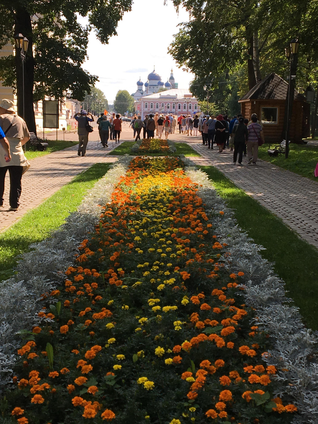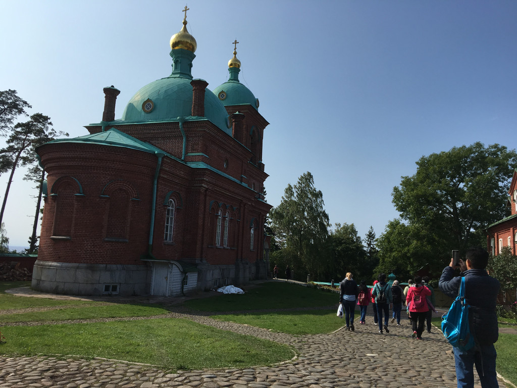 走出克里姆,导游带领大家沿着小镇道路一直走下去,过去教堂的遗址,现在是小镇居民公共活动区,新建的酒店,喀山教堂,17世纪的金顶复活-男修道院等等,