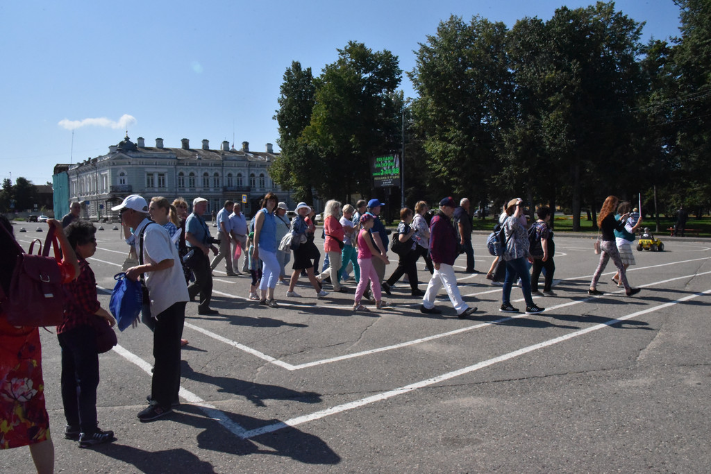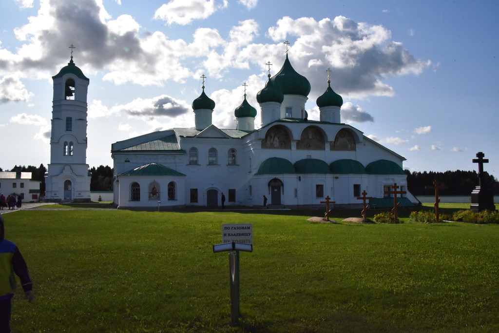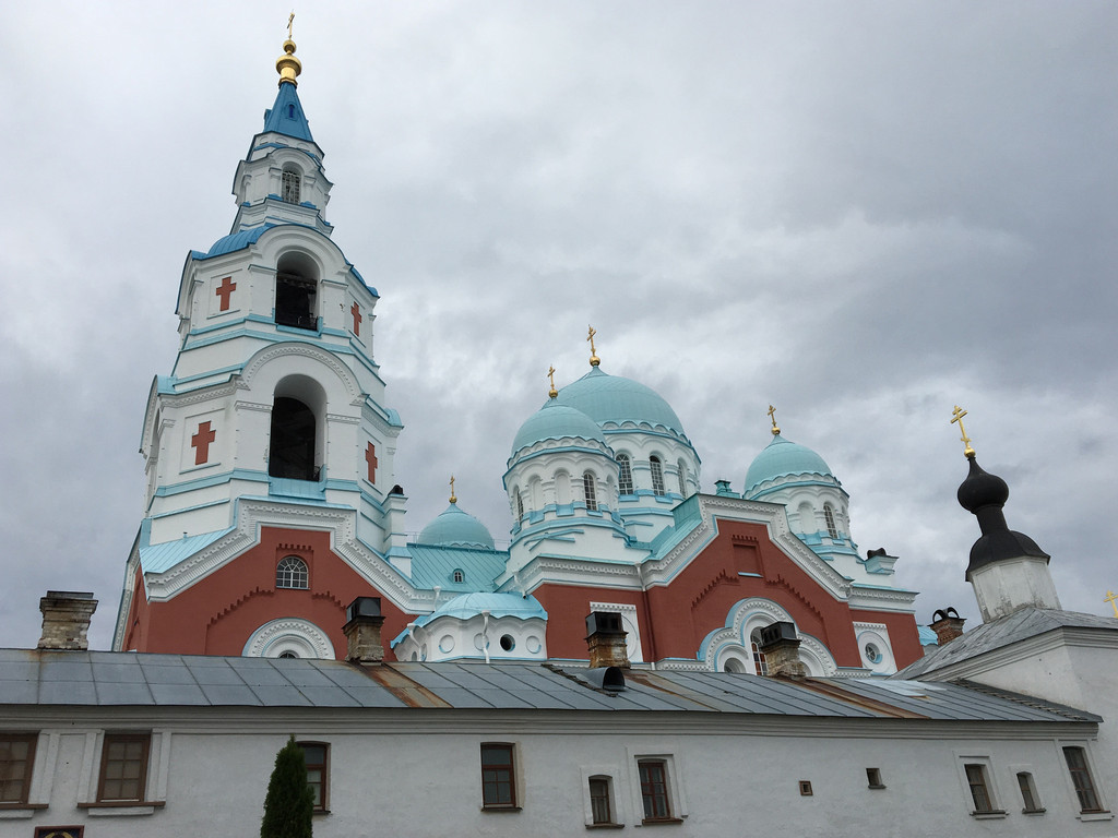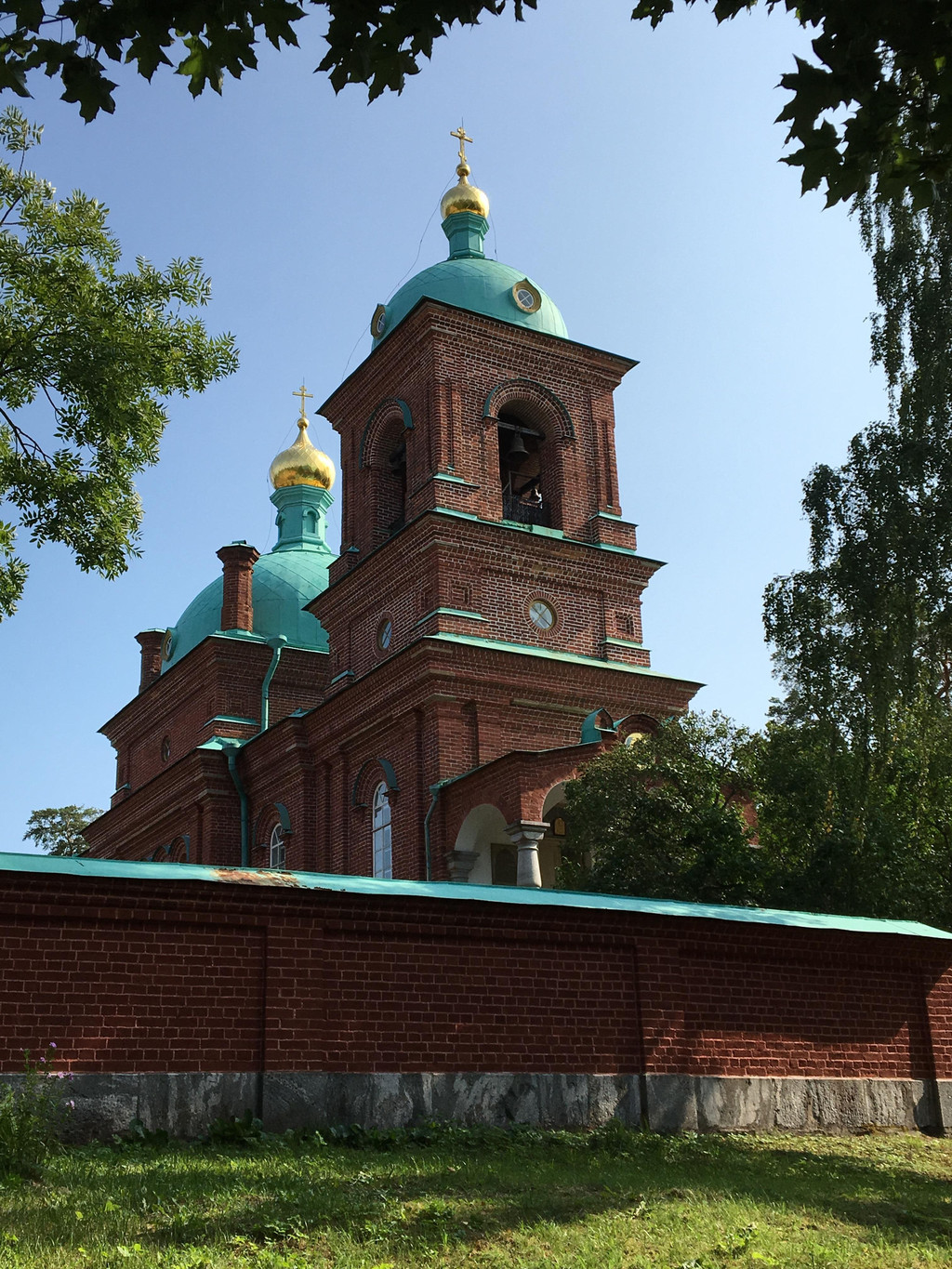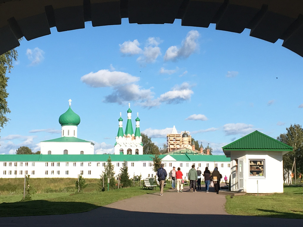 走出克里姆,导游带领大家沿着小镇道路一直走下去,过去教堂的遗址,现在是小镇居民公共活动区,新建的酒店,喀山教堂,17世纪的金顶复活-男修道院等等,