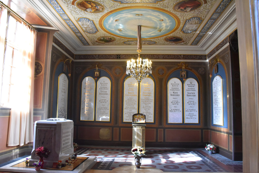 其他各位沙皇按照家族的方式分别排列, 1917年十月革命中被迫退位并被处死的最后一位沙皇尼古拉二世一家有一个单独的房间,这里一具棺木埋葬着他们全家。
