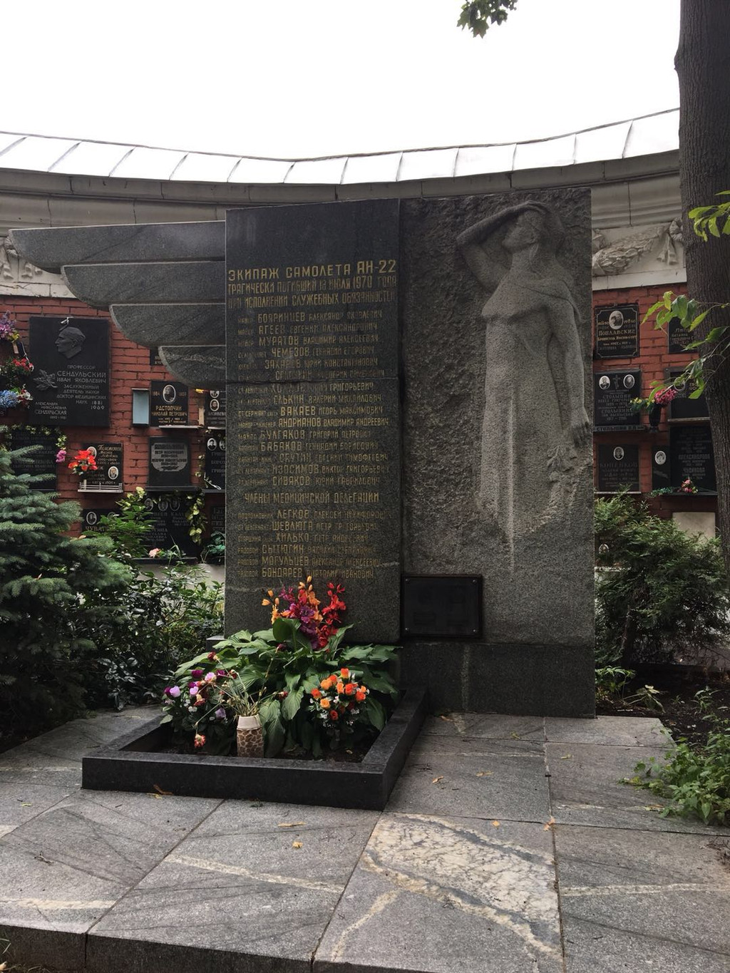 这是一座合葬墓,埋葬着22位俄罗斯儿童合唱团的成员,他们死于1970年的一次空难,墓碑上镌刻着22位遇难者的姓名,一位母亲正仰望天空期待着她的孩子归来。
