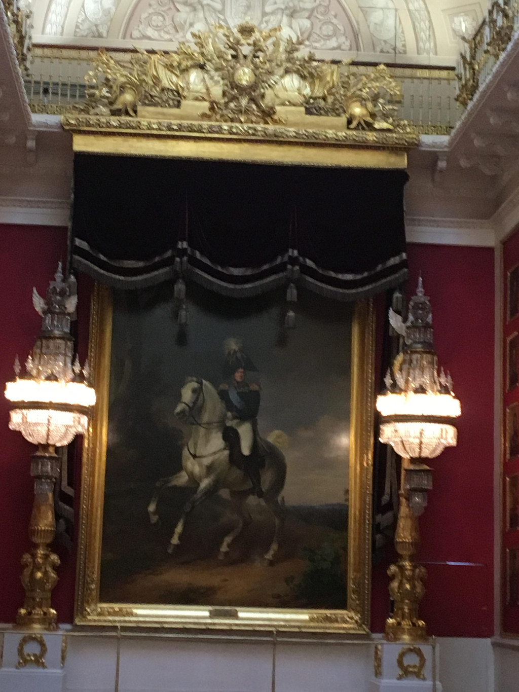 1812年战争纪念走廊里,有332幅油画,其中一幅为拿破仑,另一幅为打败拿破仑的库图佐夫,他在俄法战争中建议放弃莫斯科,采用断粮草方式使其溃败,