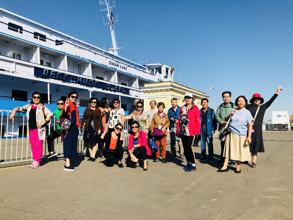 真的要离船了,让我们依依不舍的还有那位美丽的俄罗斯姑娘叶琳娜和中文翻译小张,她们的工作也要到此结束啦。