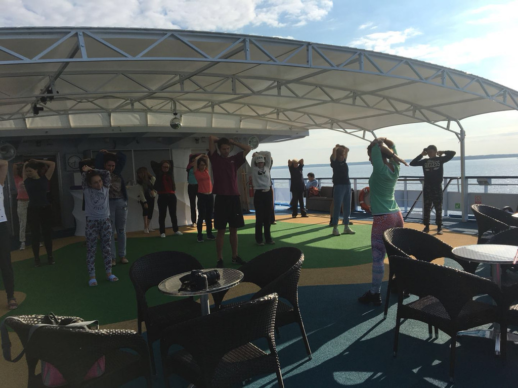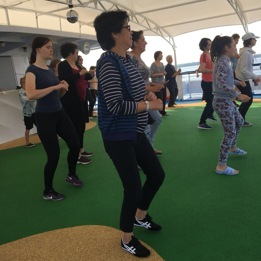 早上8:30甲板上有人领着做操,多年不运动的我也跟着活动一下吧,