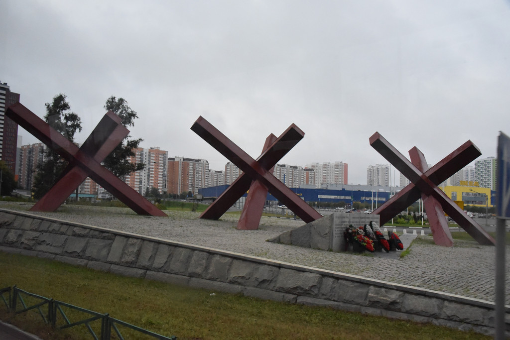 身居北京的我太了解北京的堵车了,但我还是觉得北京的堵除了客观的车辆数外更多还是道路规划以及人为因素造成的。提起北京的堵车就闹心,好在现在还早,没有遇到莫斯科的堵车,我们顺利地进城,距克里姆林宫23公里处,路边出现三个巨大的路障架子模型,这是一处二战纪念地,二战期间希特勒向莫斯科发动进攻,俄国女特工了解到当时日本深陷二战无暇顾及苏联,于是苏联将全部兵力从其他战线集中到莫斯科,打响莫斯科保卫战,德国的军队就是在这个距克里姆林宫23公里处被阻挡,再也没能前进一步,这里的巨大路障代表了苏联的胜利。