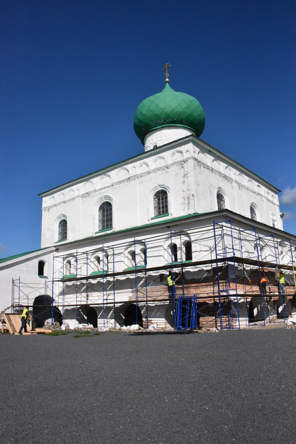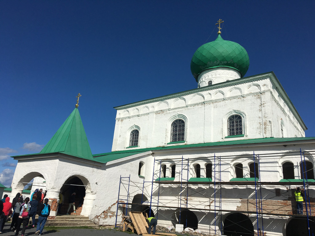 喀山教堂是1801-1811年期间建造的,是沙皇时期东正教主教堂,它的建筑材料是灰质岩,容易受到侵蚀风化,教堂北面的墙和柱风化比较明显,