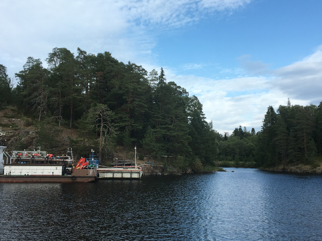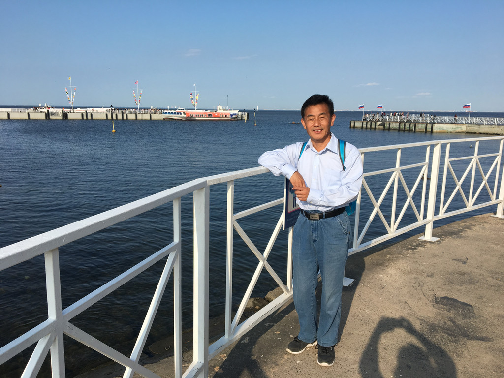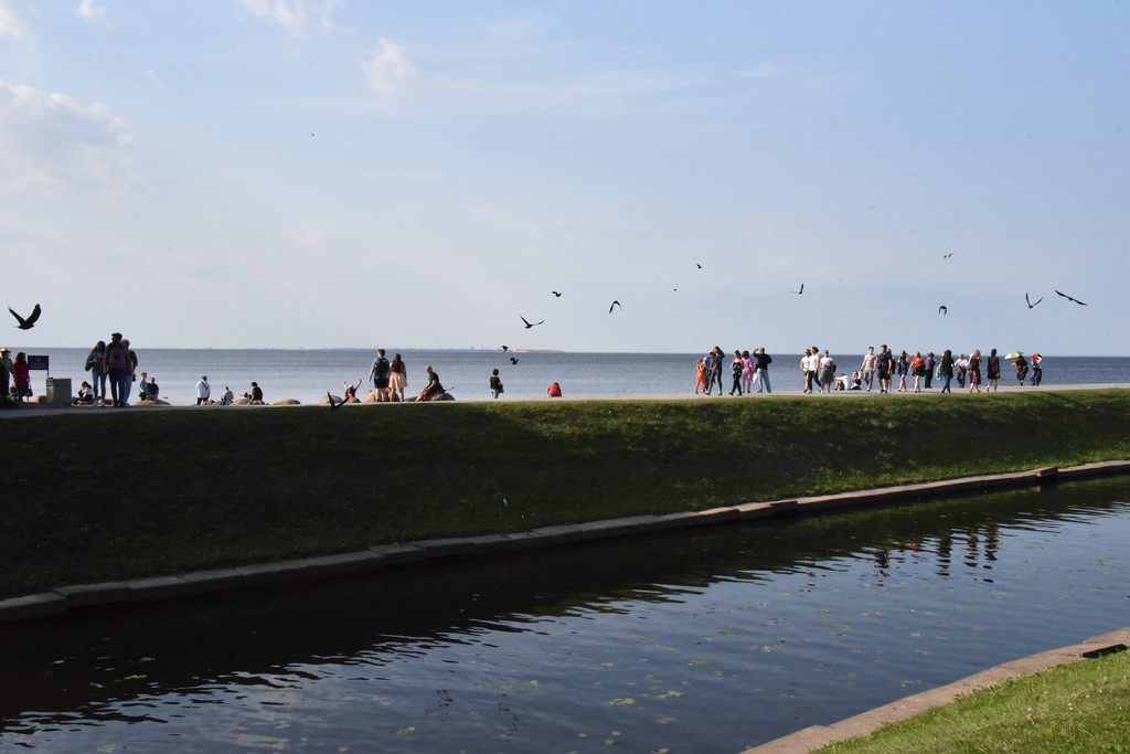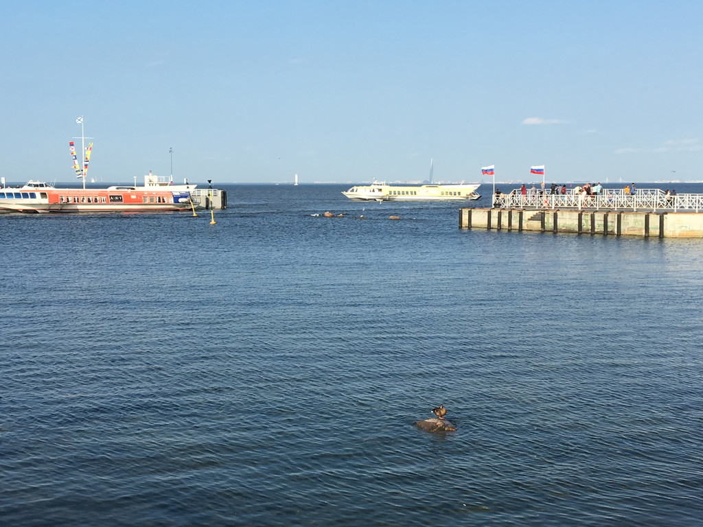 走到运河入海处,对面就是芬兰湾,真是有意思,两个月前我们还在芬兰的赫尔辛基芬兰堡隔波罗的海向俄罗斯张望,今天我们又转到了俄罗斯,隔波罗的海向芬兰张望,如果时空可以穿越,能回去见见自己当时的身影一定非常有趣。