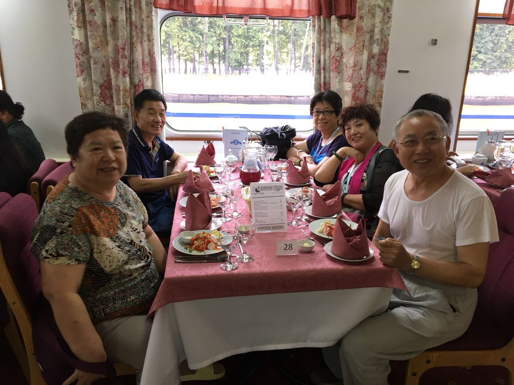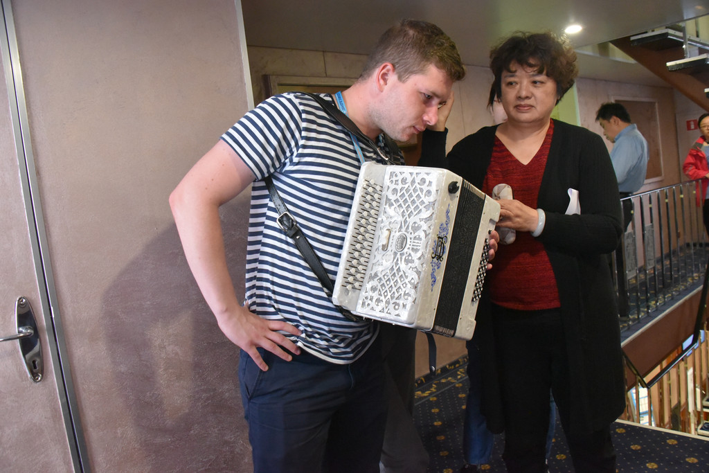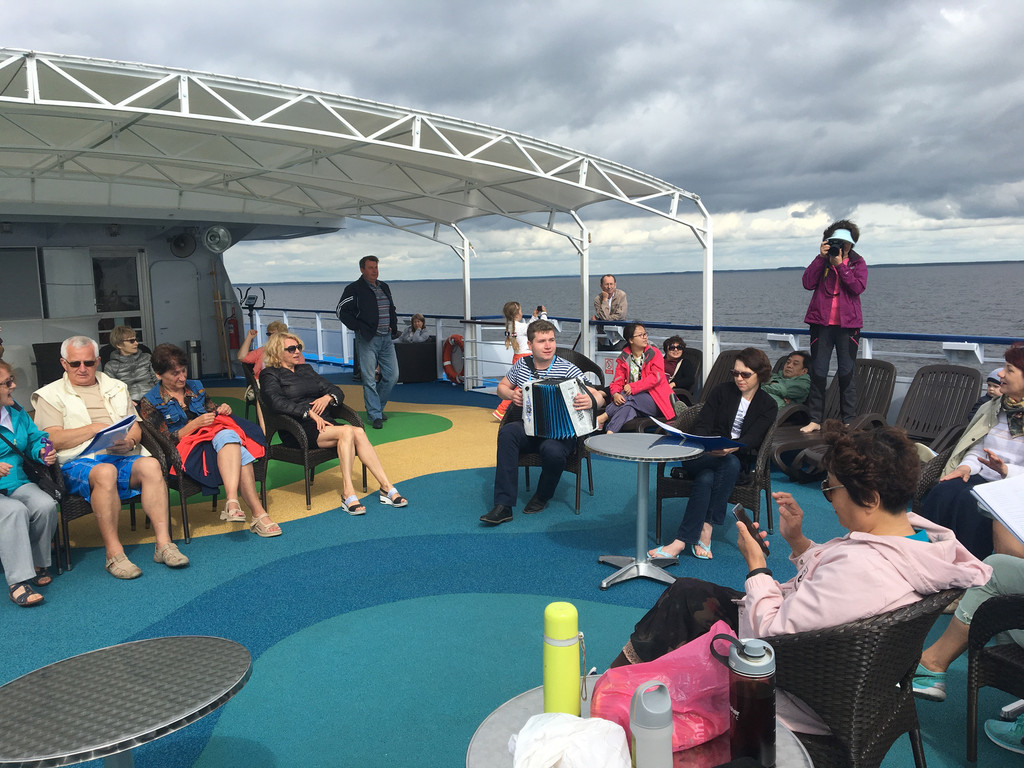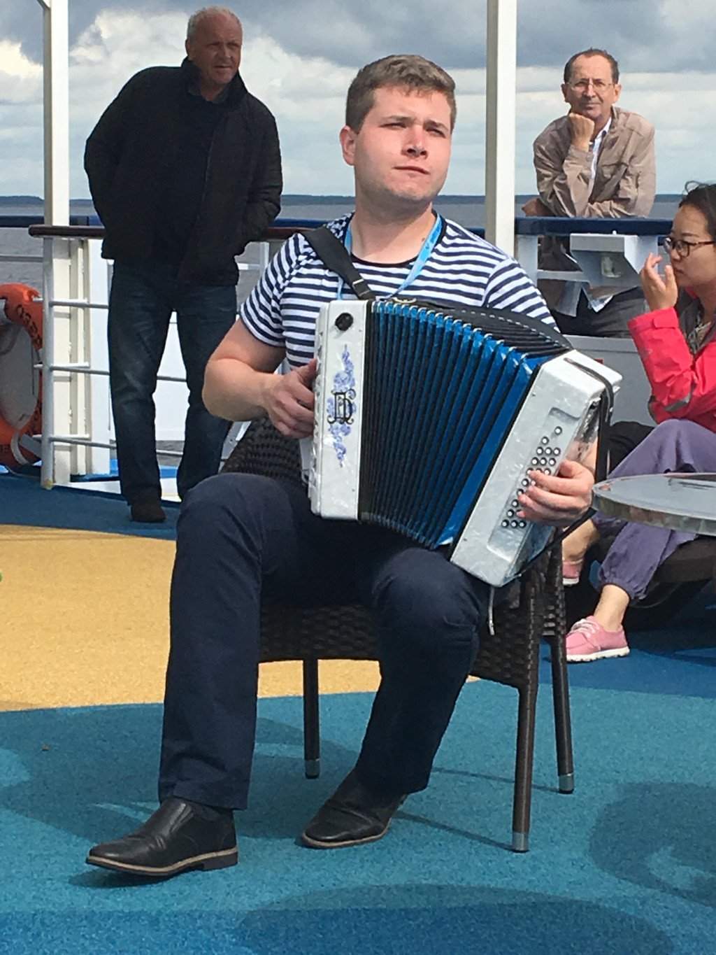 感谢这几天船上餐厅为我们服务的小姑娘,感谢俄罗斯导游,感谢船长,还要感谢几天来多次陪我们练习的手风琴手-俄罗斯小帅哥,明天就要到圣彼得堡了,晚上还要去看芭蕾舞《天鹅湖》,明天也要和我们乘坐的这艘“天鹅湖号”拜拜了。