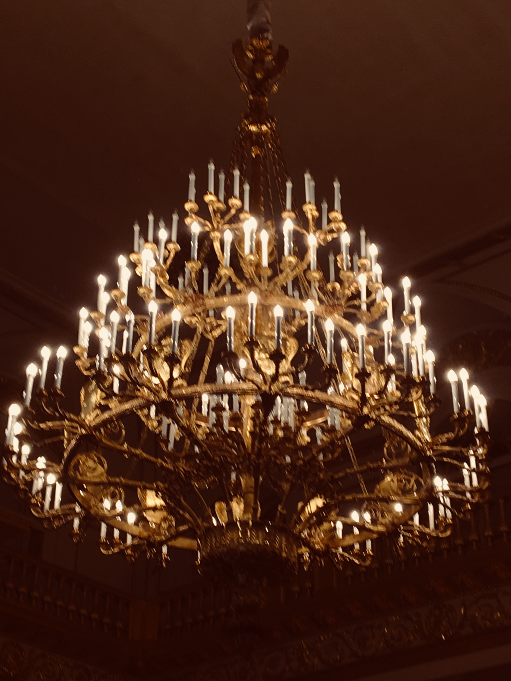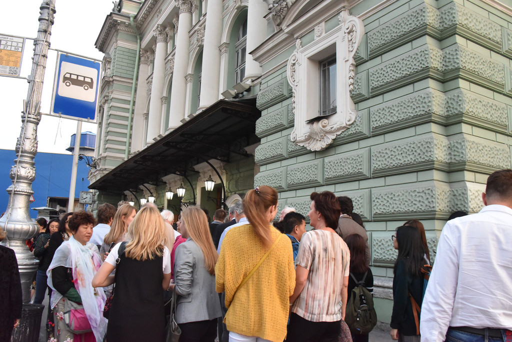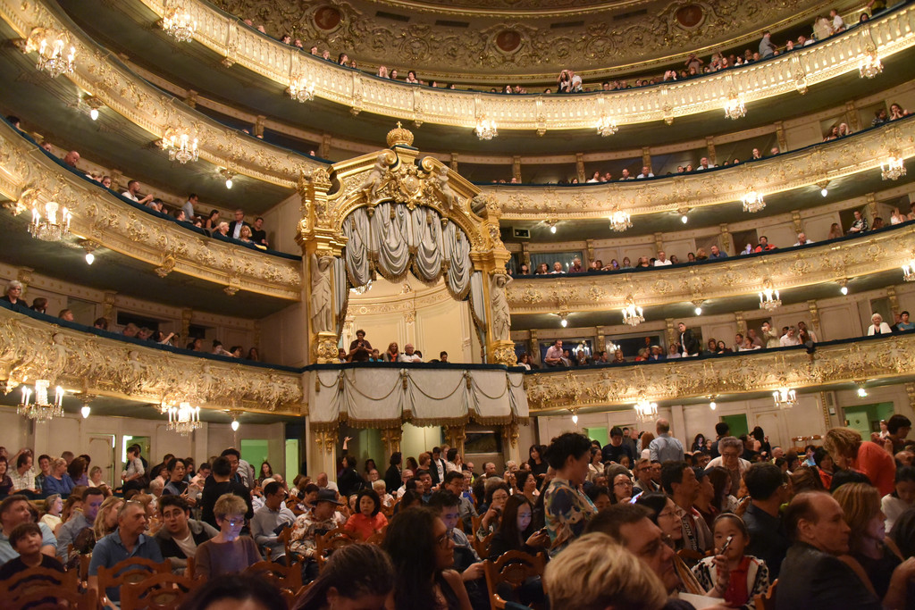 今晚的芭蕾舞《天鹅湖》是一个多星期前预定的,圣彼得堡马林斯基剧院芭蕾舞与一般租剧场演出不同,在马林斯基剧院里演出的只有马林斯基芭蕾舞团,主场战斗似乎有更多优势,这里经常一票难求,排队入场,很多观众穿着华丽就像自己也是来演出的,剧院内幕布设计很古典,剧院保持了传统的方式,三个贵宾包厢,五层看台,木制扶手椅,我们的票买在第三排已经足够近了,挪到第一排更是有运气,