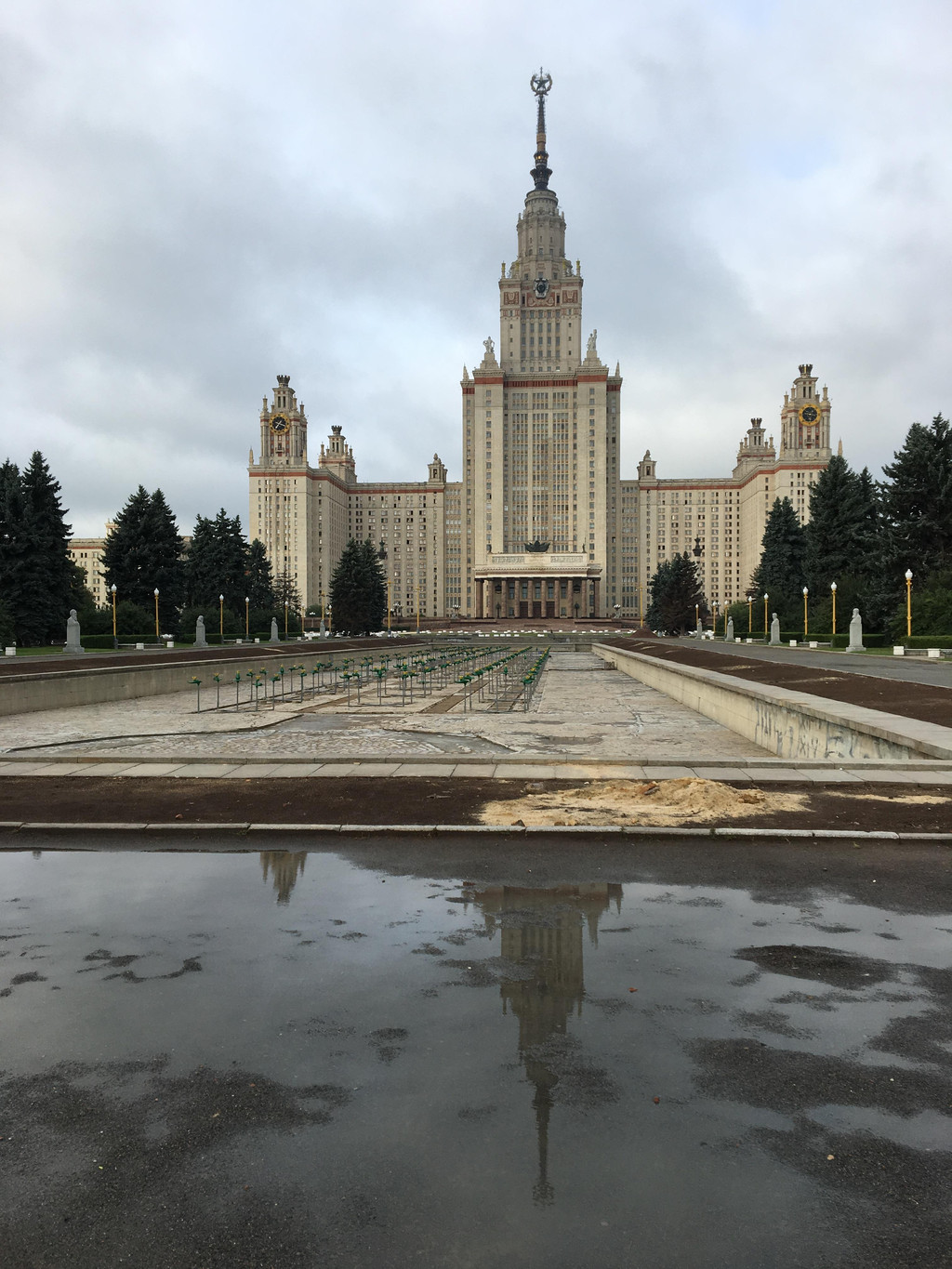 昨夜的大雨让莫斯科大学出现倒影,非常漂亮。