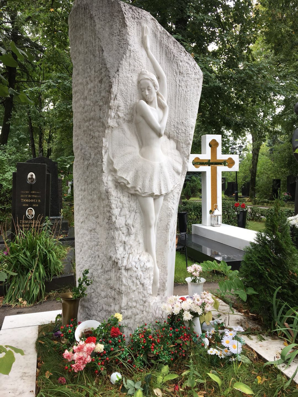 这里还埋葬着苏联芭蕾舞演员乌兰诺娃,她在芭蕾舞剧天鹅湖中的单腿旋转49圈记录到目前仍无人能超越,