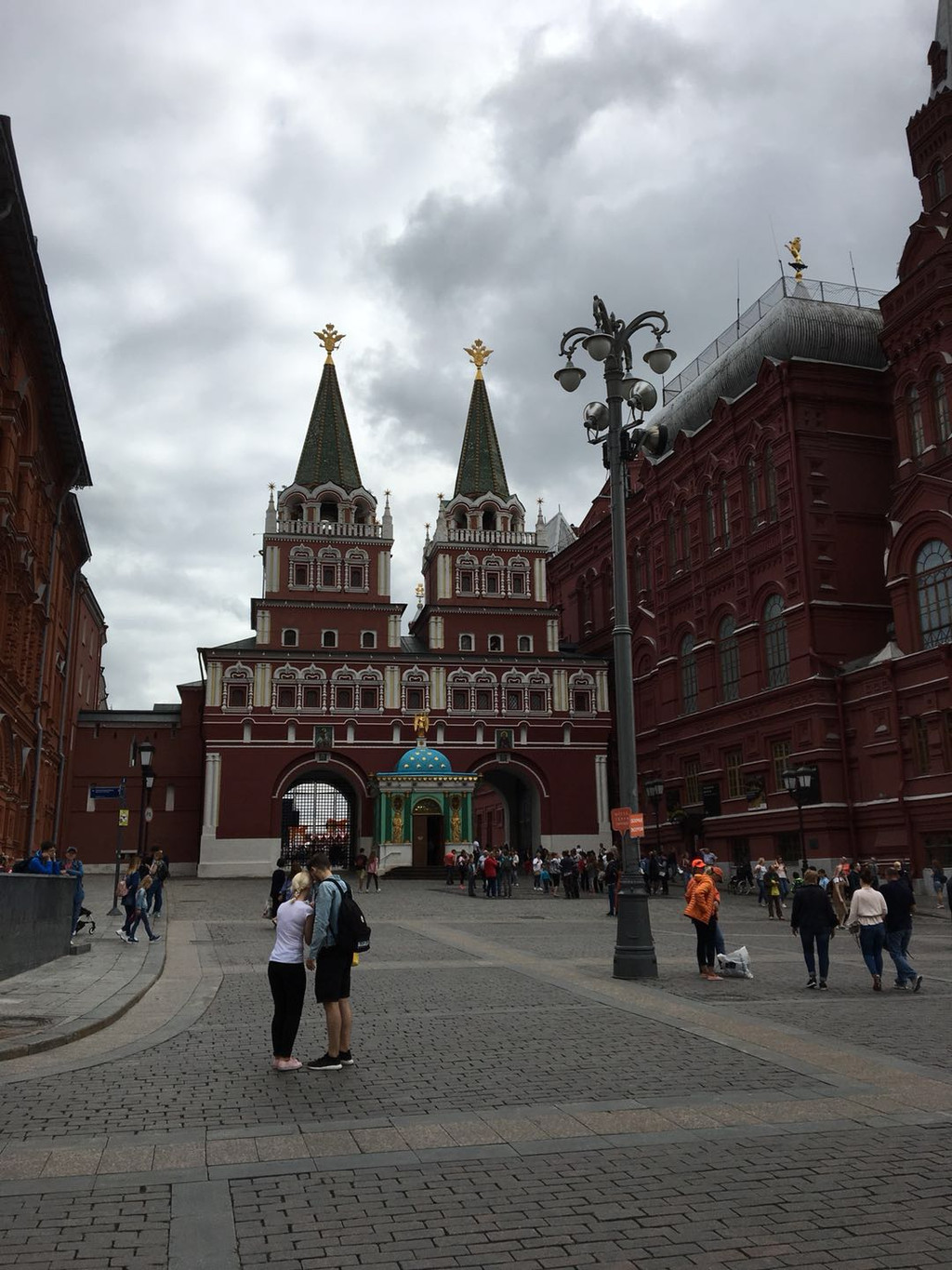 它旁边的克里姆林宫深红色的围墙和哥特式钟楼建筑也是被世人熟悉的地标建筑,这些都是经常出现在电视中的场景,今天我们也身在其中了,感觉真不错,