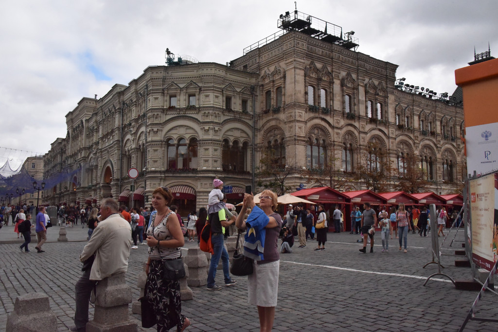 在红场周围还有很多知名建筑,白色弧形的大楼是1912年俄法战争纪念馆,对面是列宁曾经住过的四季饭店,