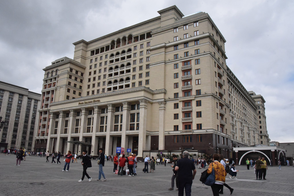 一个白色的大楼是大都会酒店,当年毛主席访问苏联时曾在此居住了三个月,这也是毛主席一生中唯一的一次出访外国,这次出访与苏联签署了和平友好条约,寻求到斯大林的帮助,对刚刚建国的新中国有极为重要的意义,