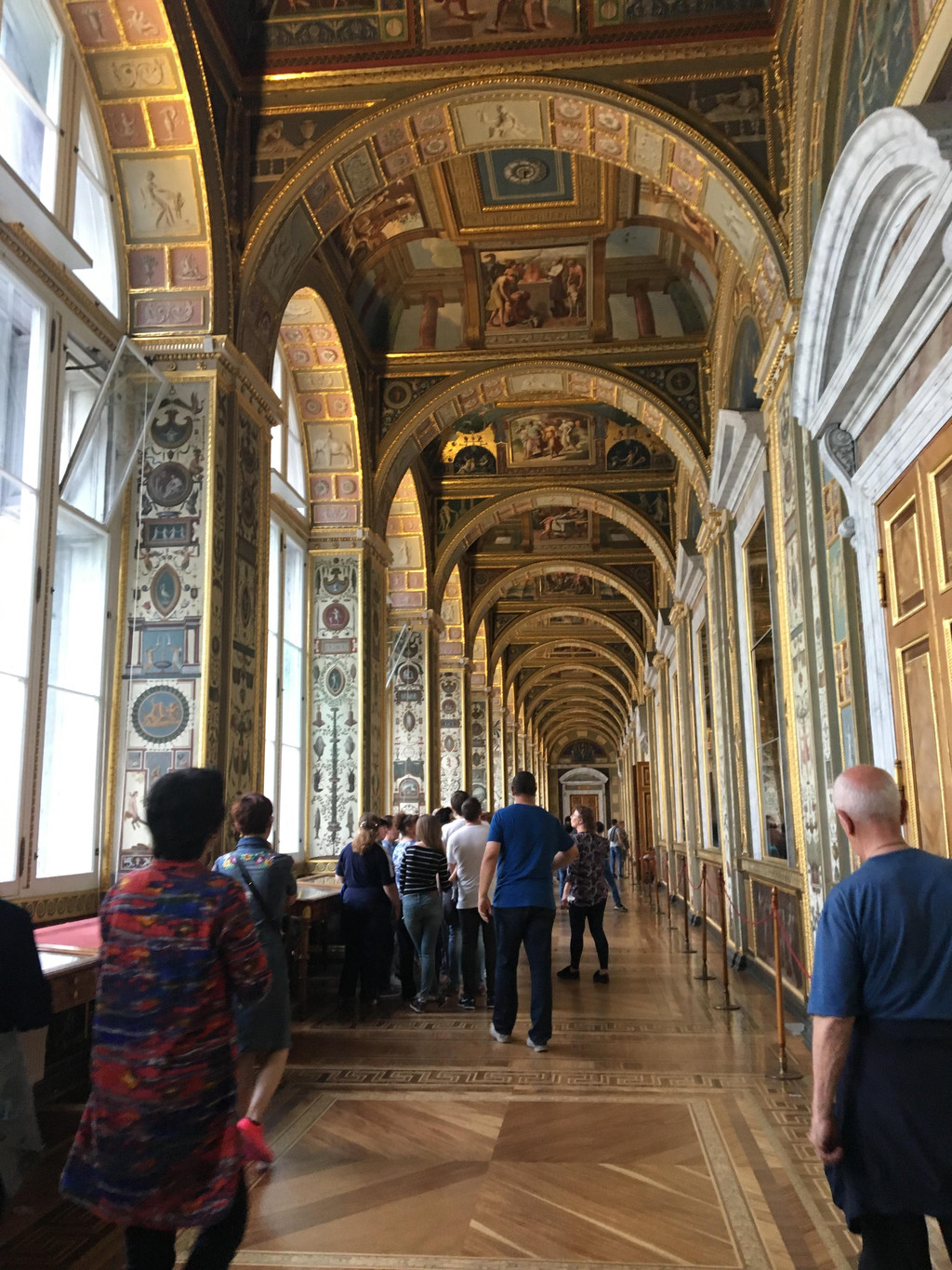 这里只要你愿意,每张画都能看半天,走廊的顶部叶卡捷琳娜二世专门让人拓印了梵蒂冈的图案,这里称拉斐尔走廊,
